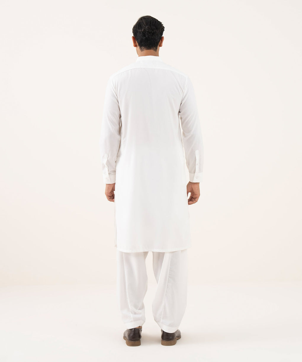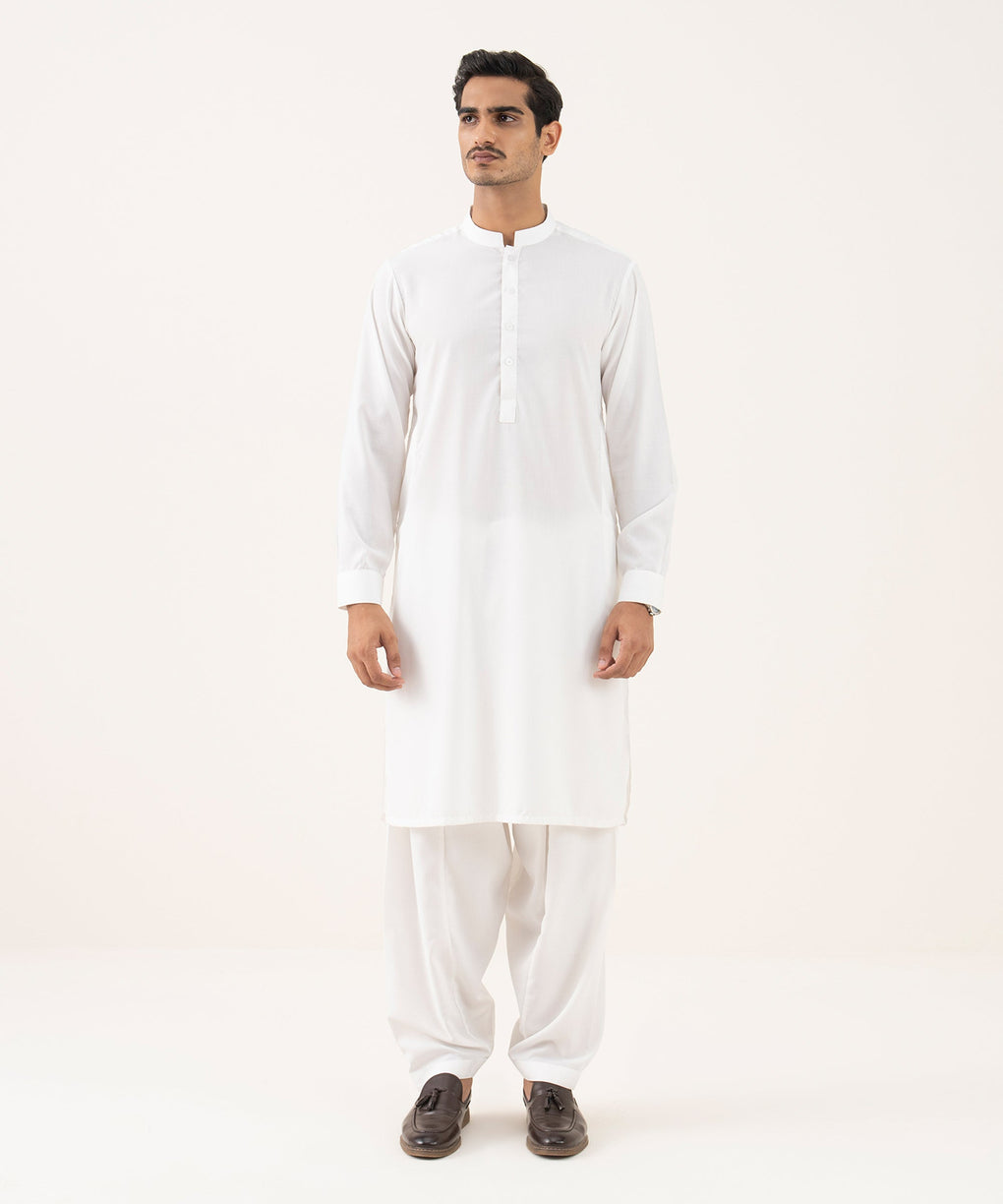 Embrace sophistication with our sharply tailored off-white kurta shalwar.