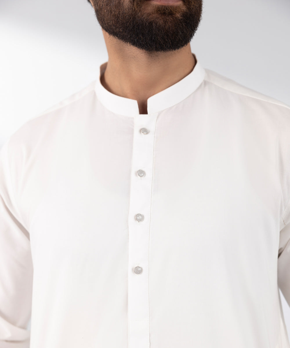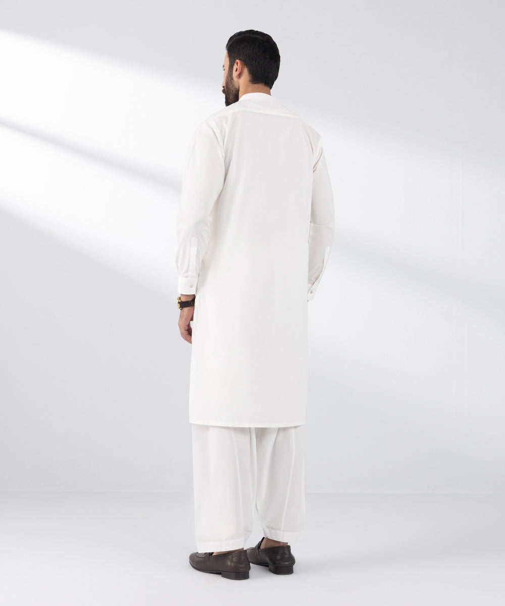 Make a sophisticated statement in our white, fine cotton slim fit shalwar kameez.