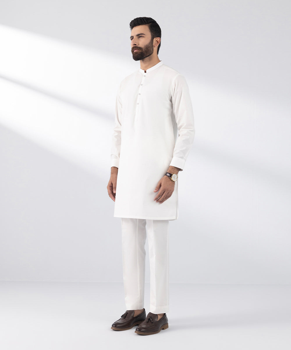 Wear confidence this season in our white, fine cotton, slim fit kurta trousers.