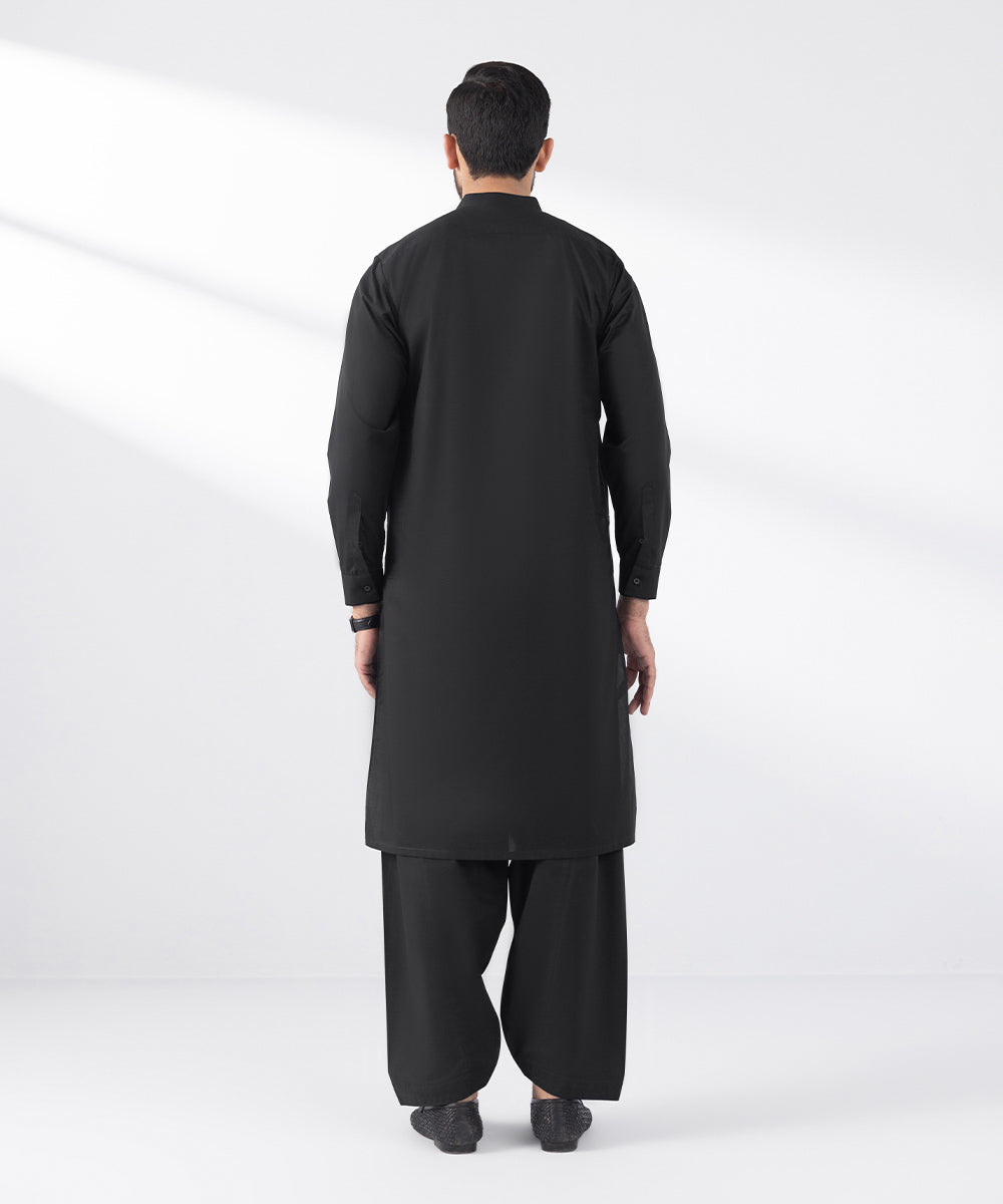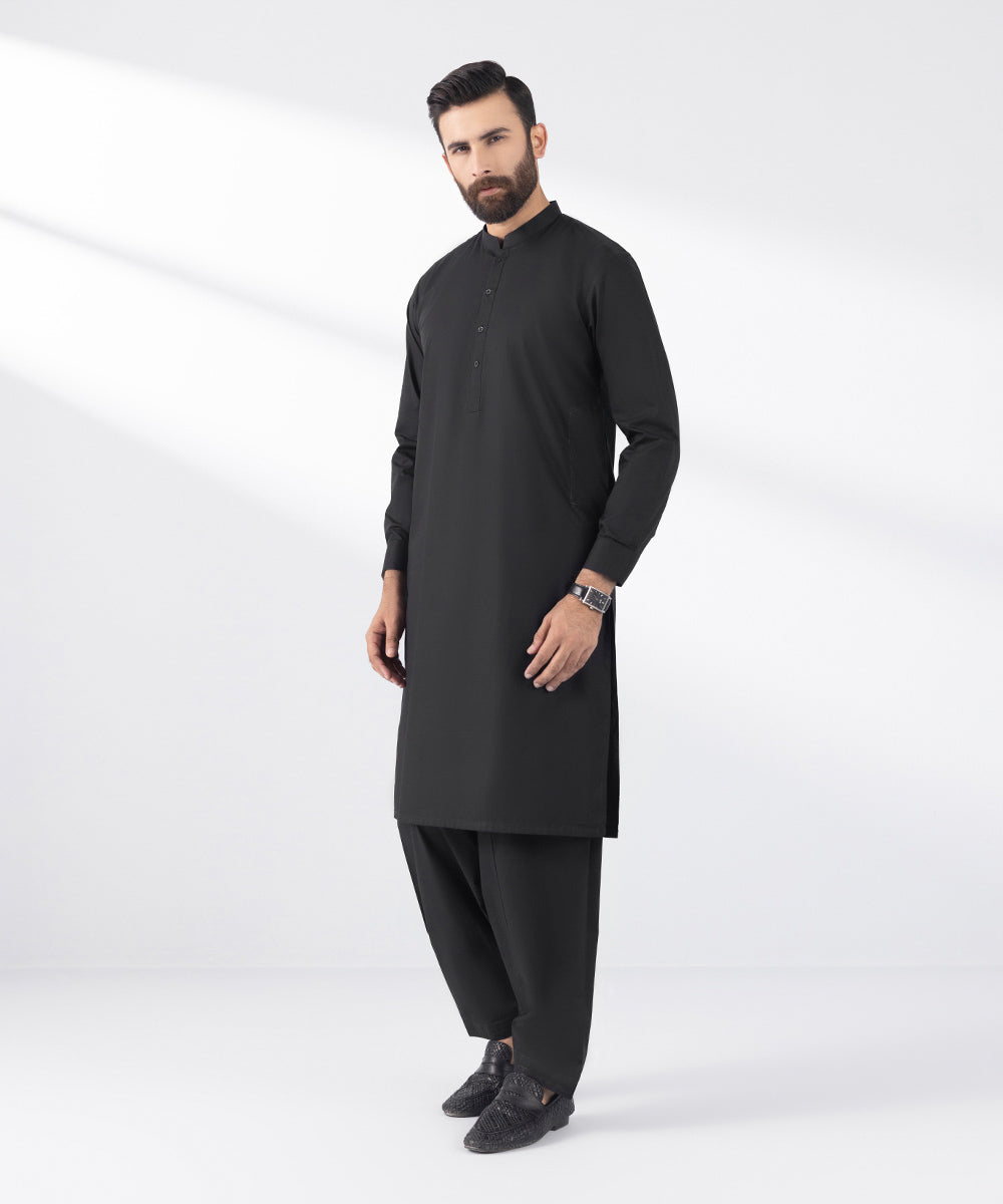 Make a sophisticated statement in our black, fine cotton slim fit shalwar kameez.