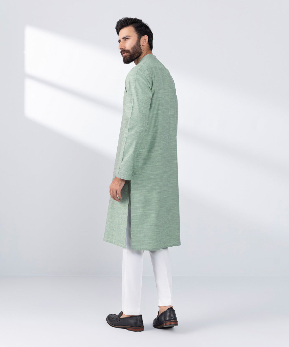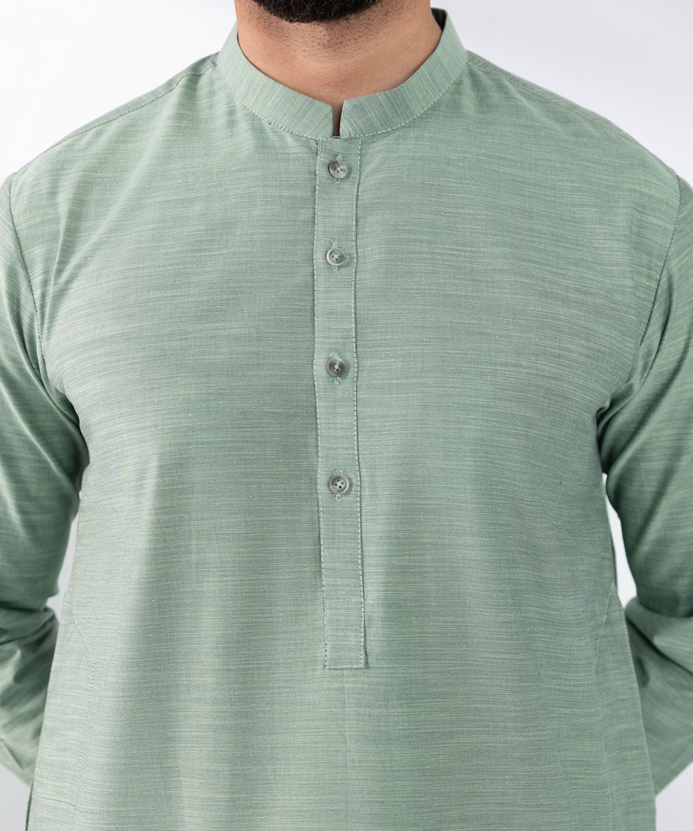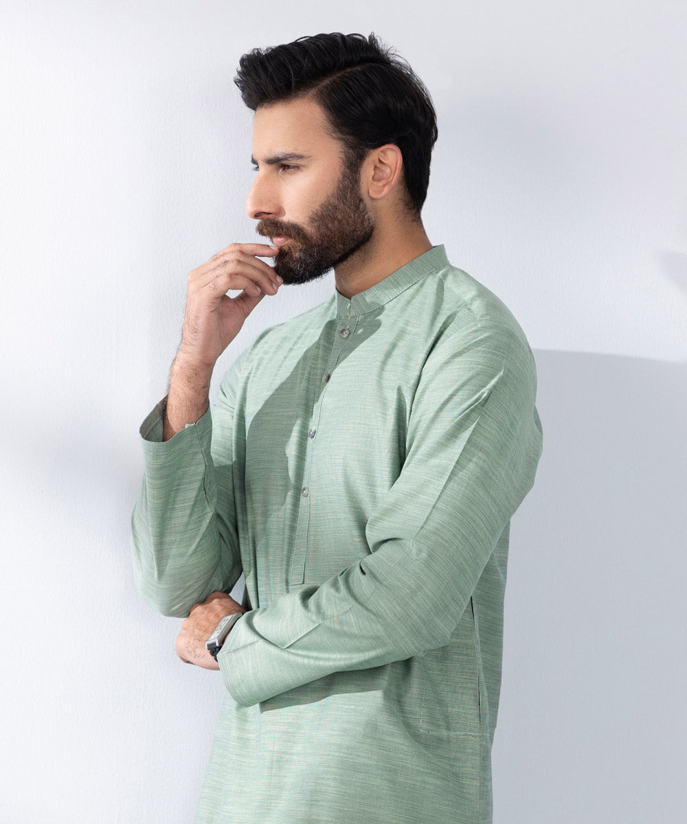Details: Solid Plain Front, Plain Back, Band Neckline, Open Cuff Sleeves, Straight Length