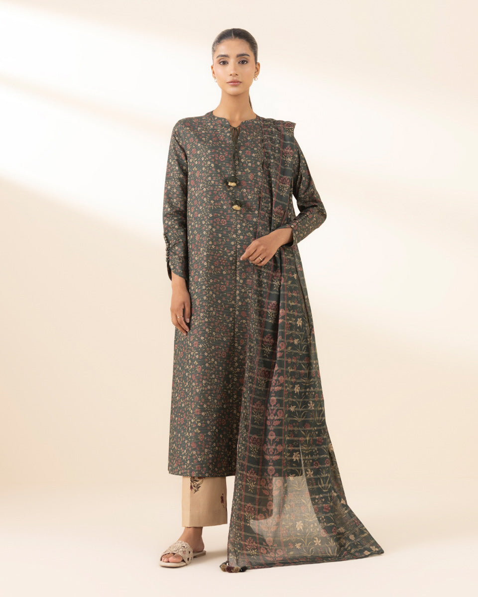 3 Piece - Printed Zari Lawn Suit