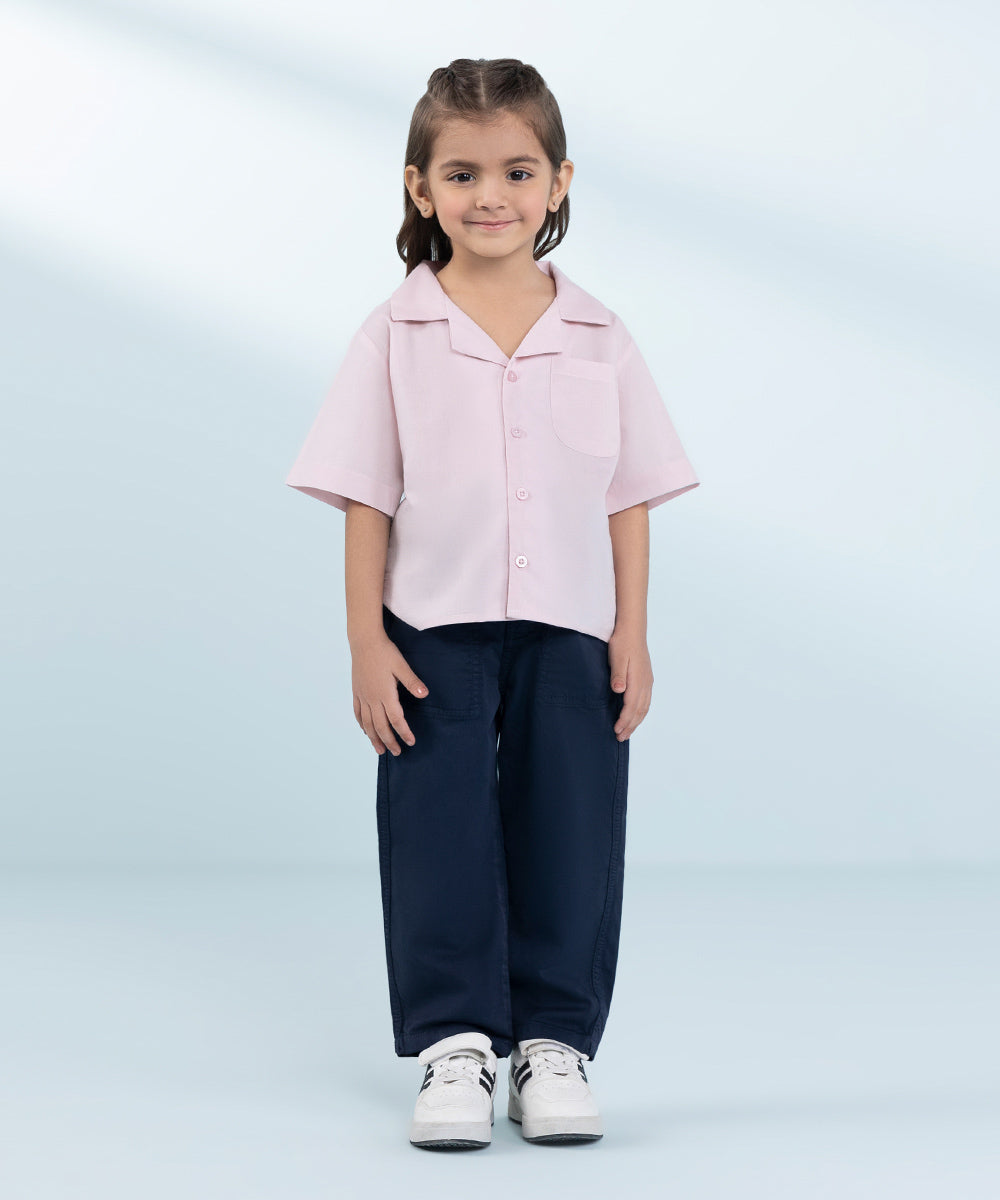 Let your little one shine bright in our dyed pink button down shirt featuring a collared neckline.