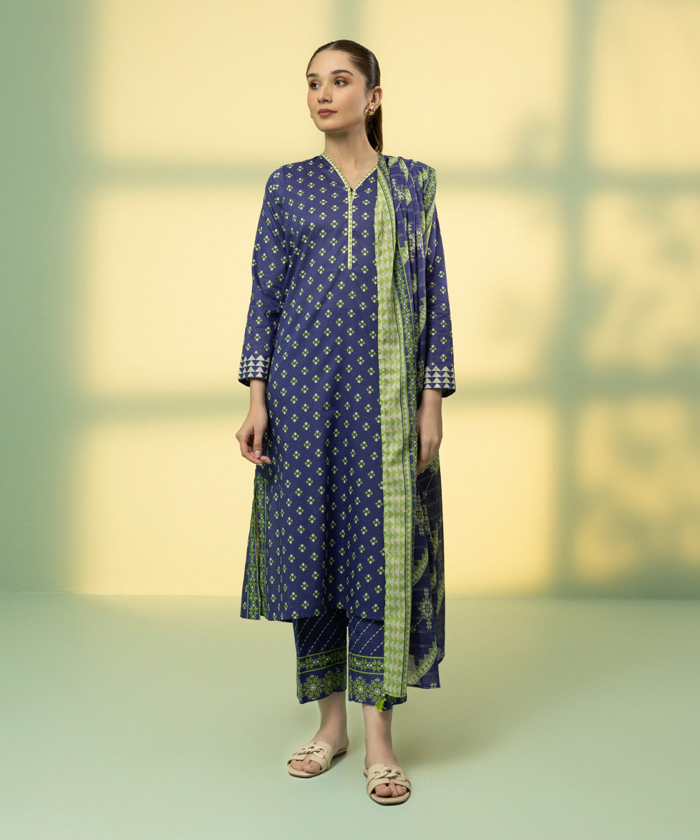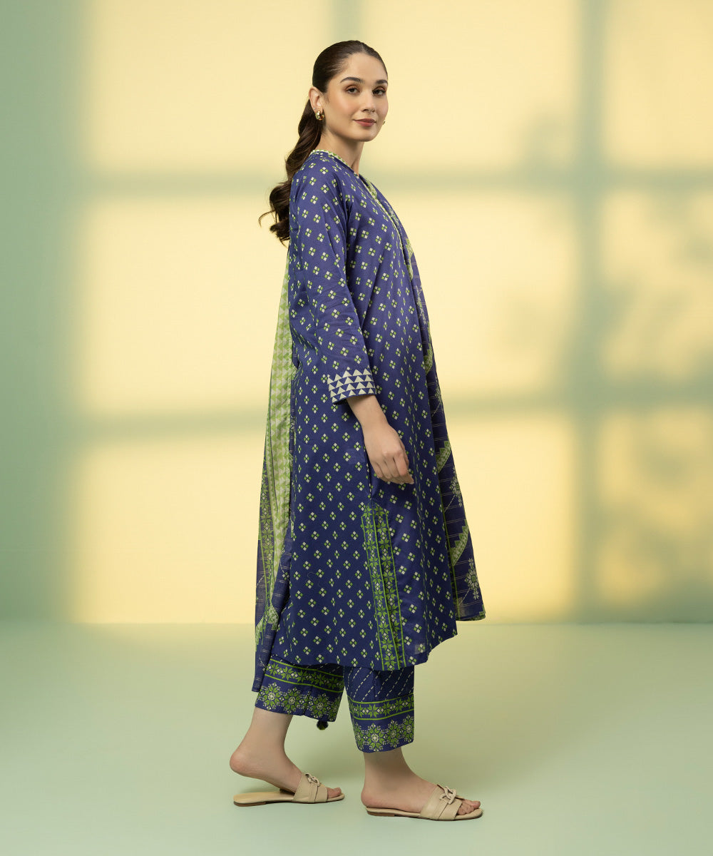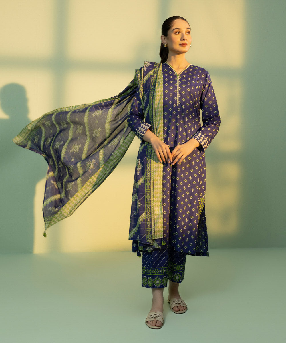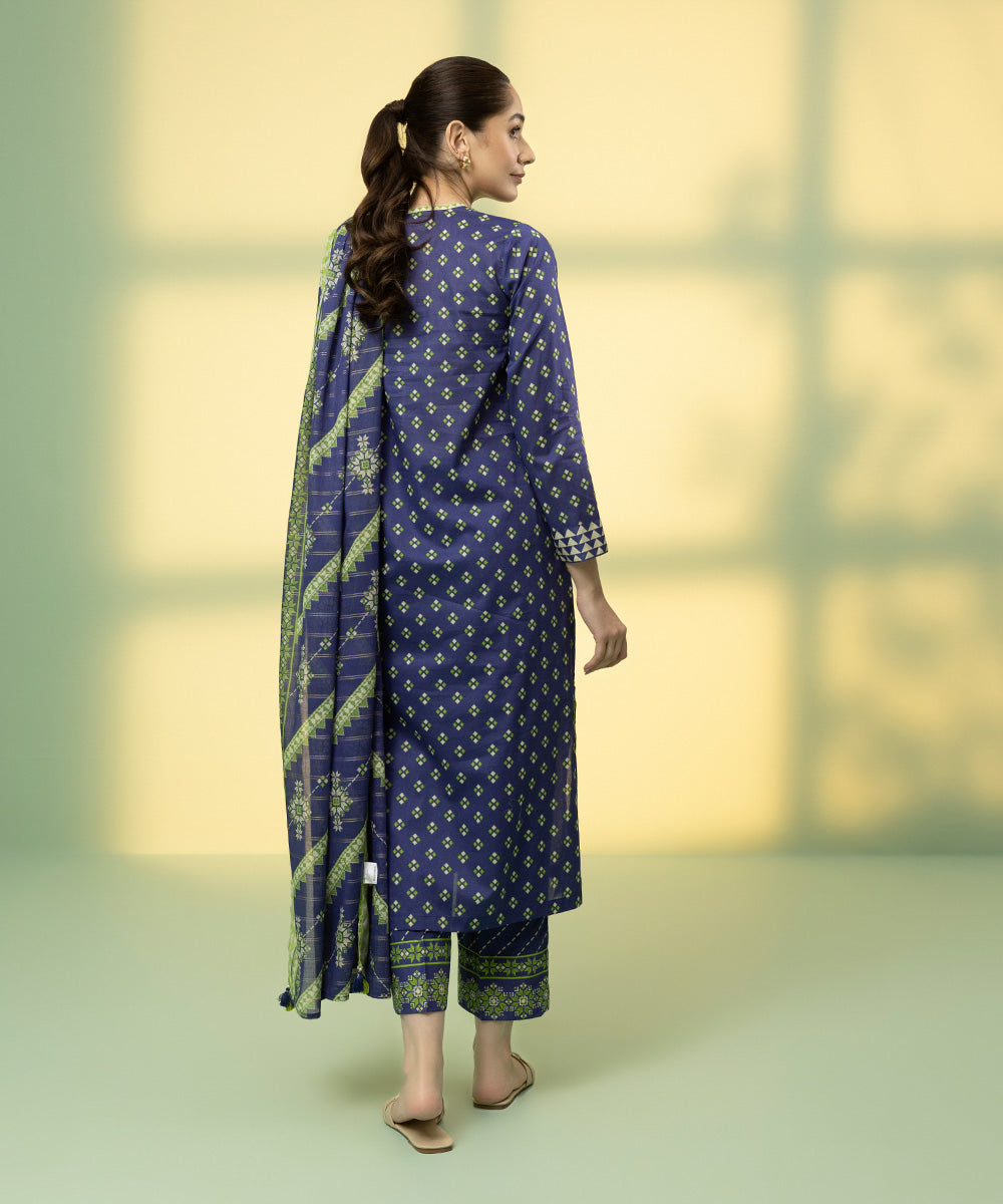 Step in style with this printed three-piece ensemble paired with a straight shirt .