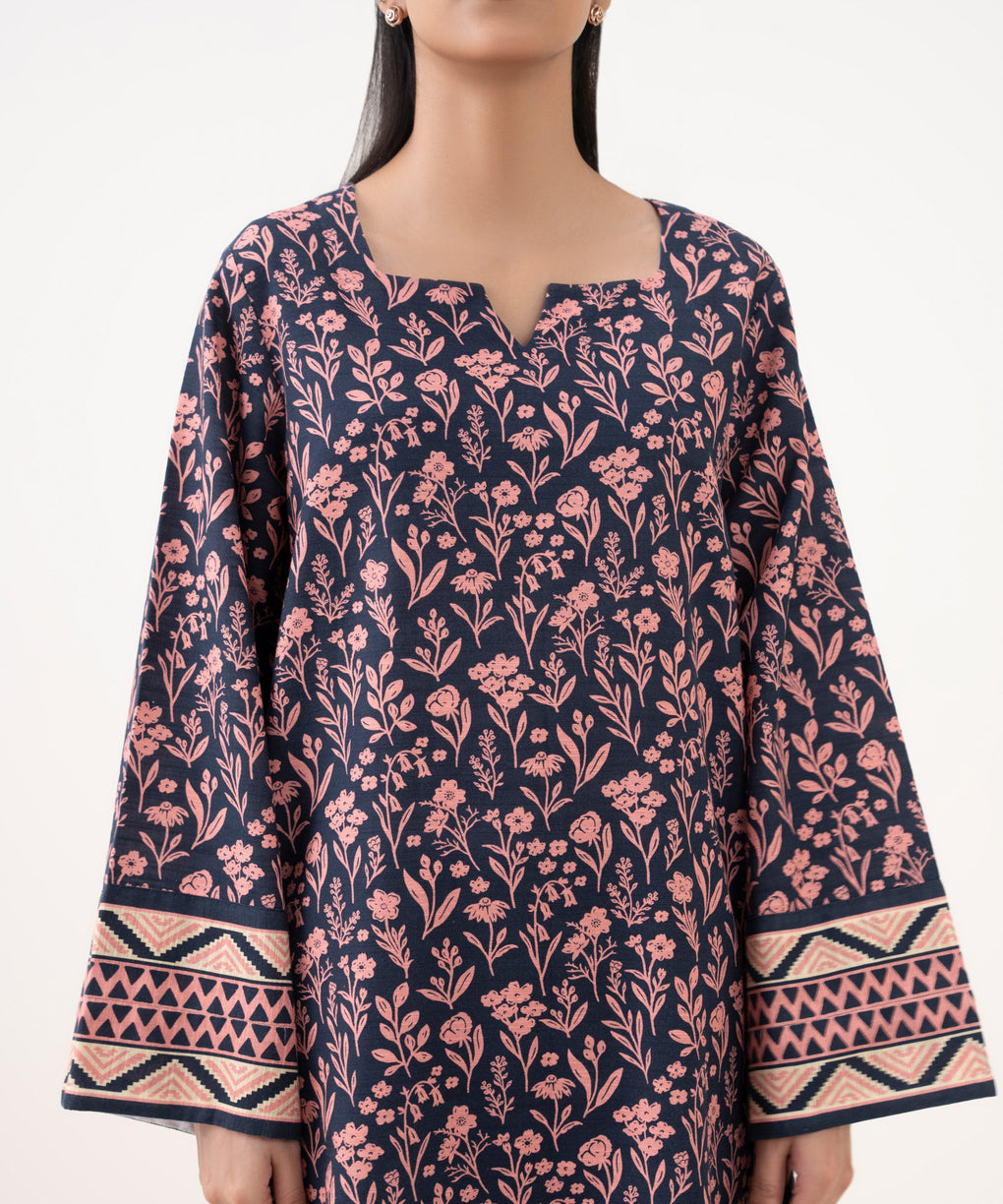 Make a statement with our two-piece printed black and peach ensemble featuring a khaddar shirt paired with a light khaddar dupatta.