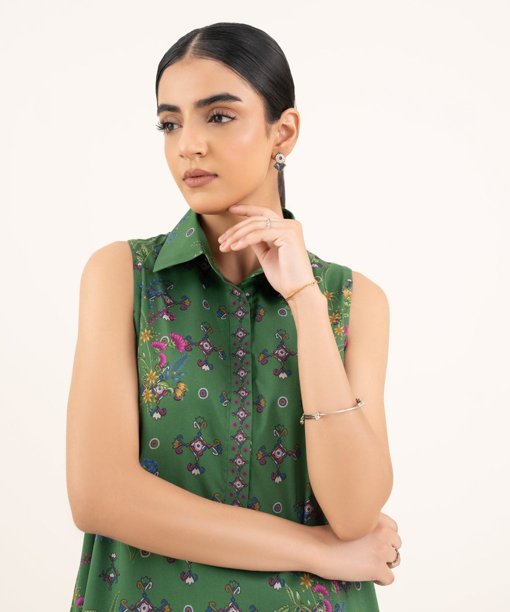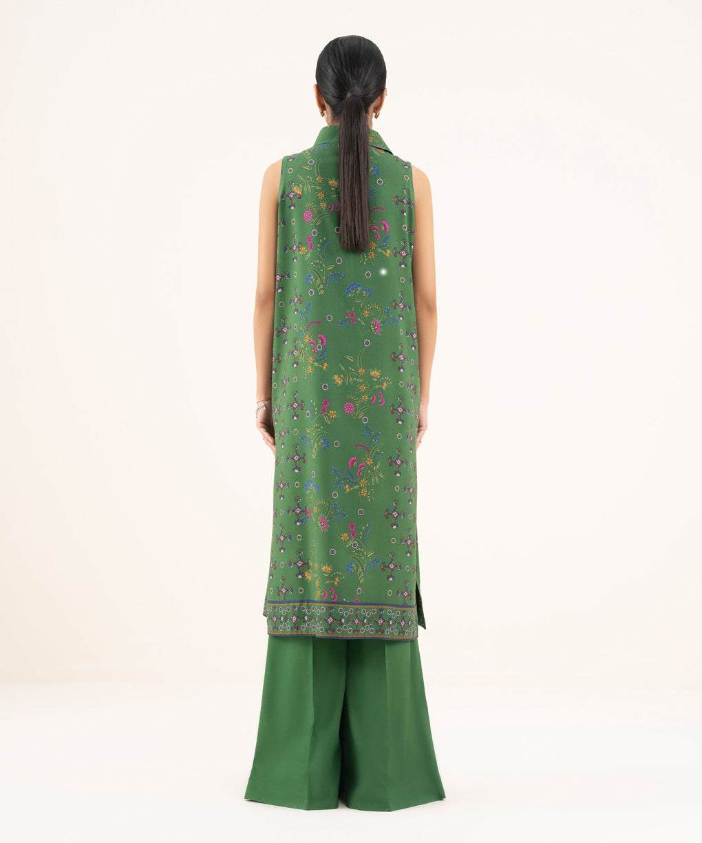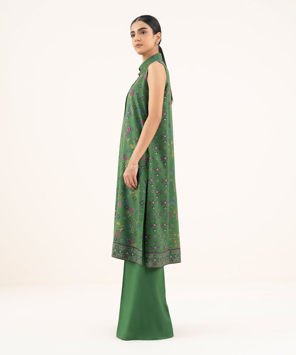 Make a statement with our two-piece printed ensemble featuring a viscose khaddar shirt paired with matching trousers.