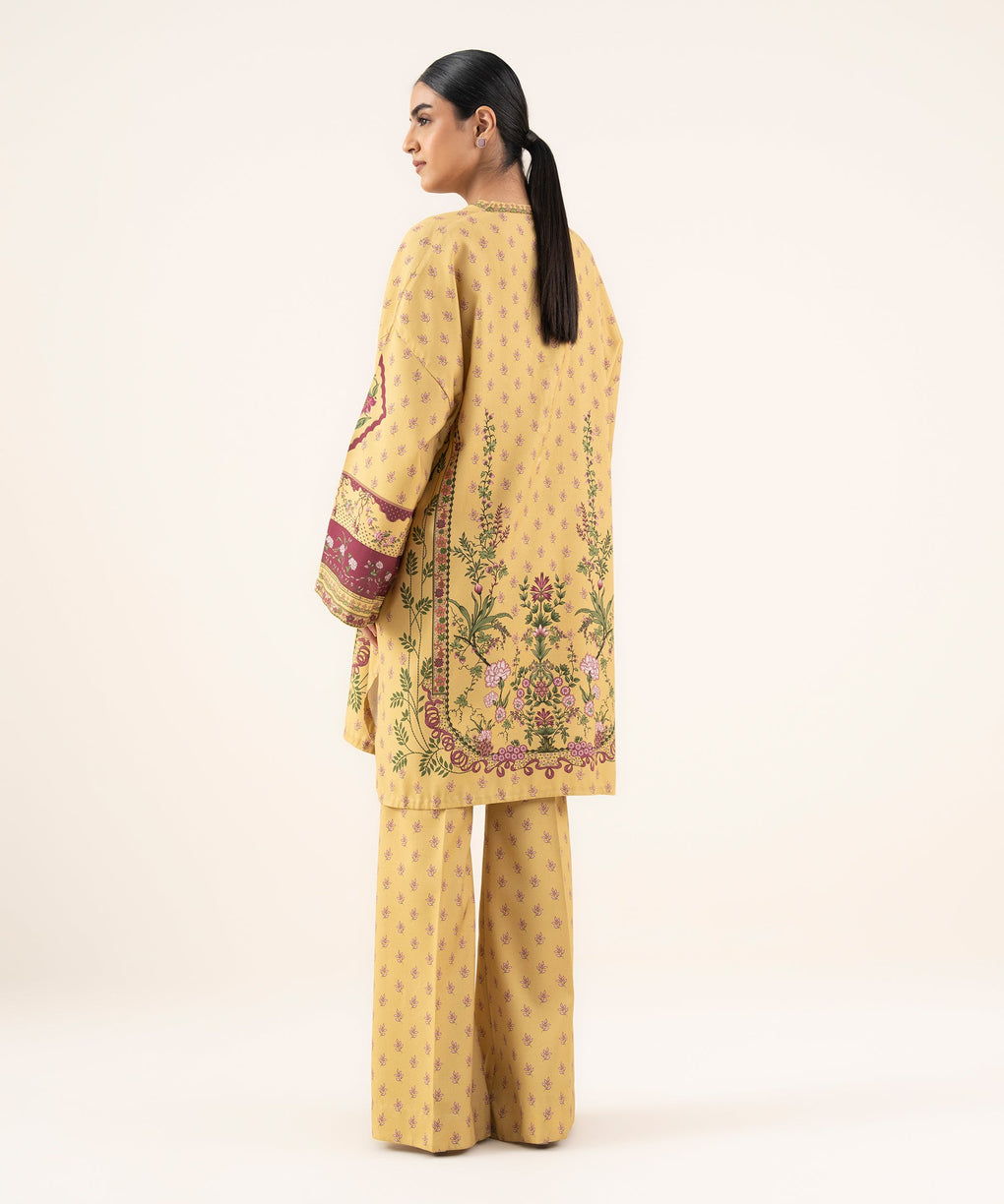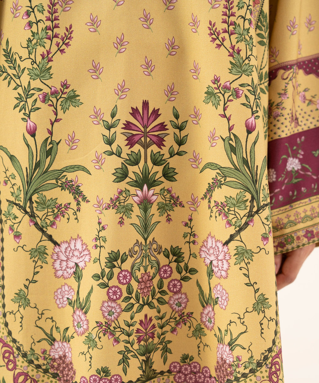 Make a statement with our two-piece printed mustard ensemble featuring a viscose khaddar shirt paired with matching trousers.