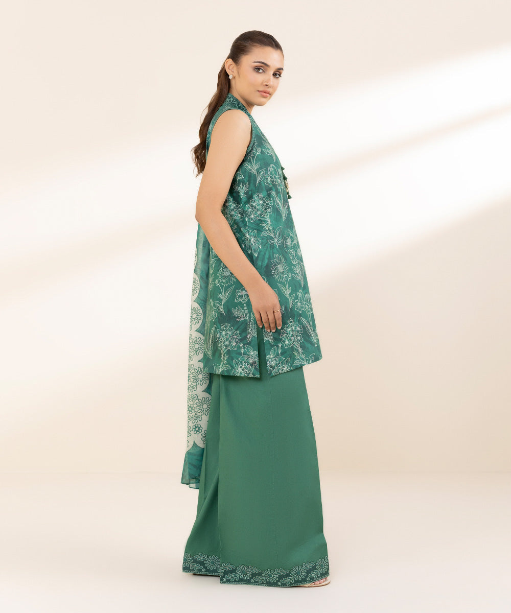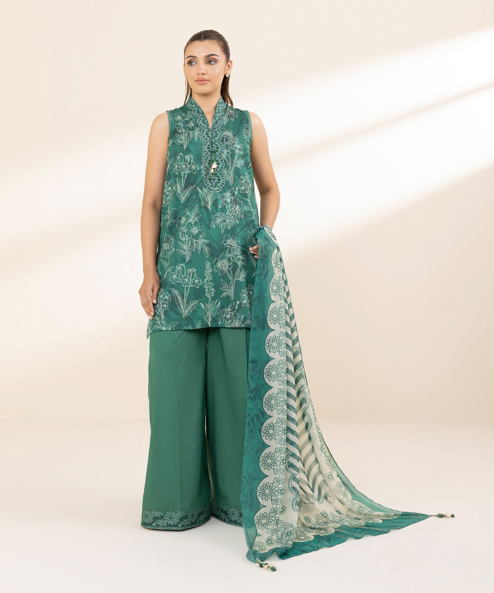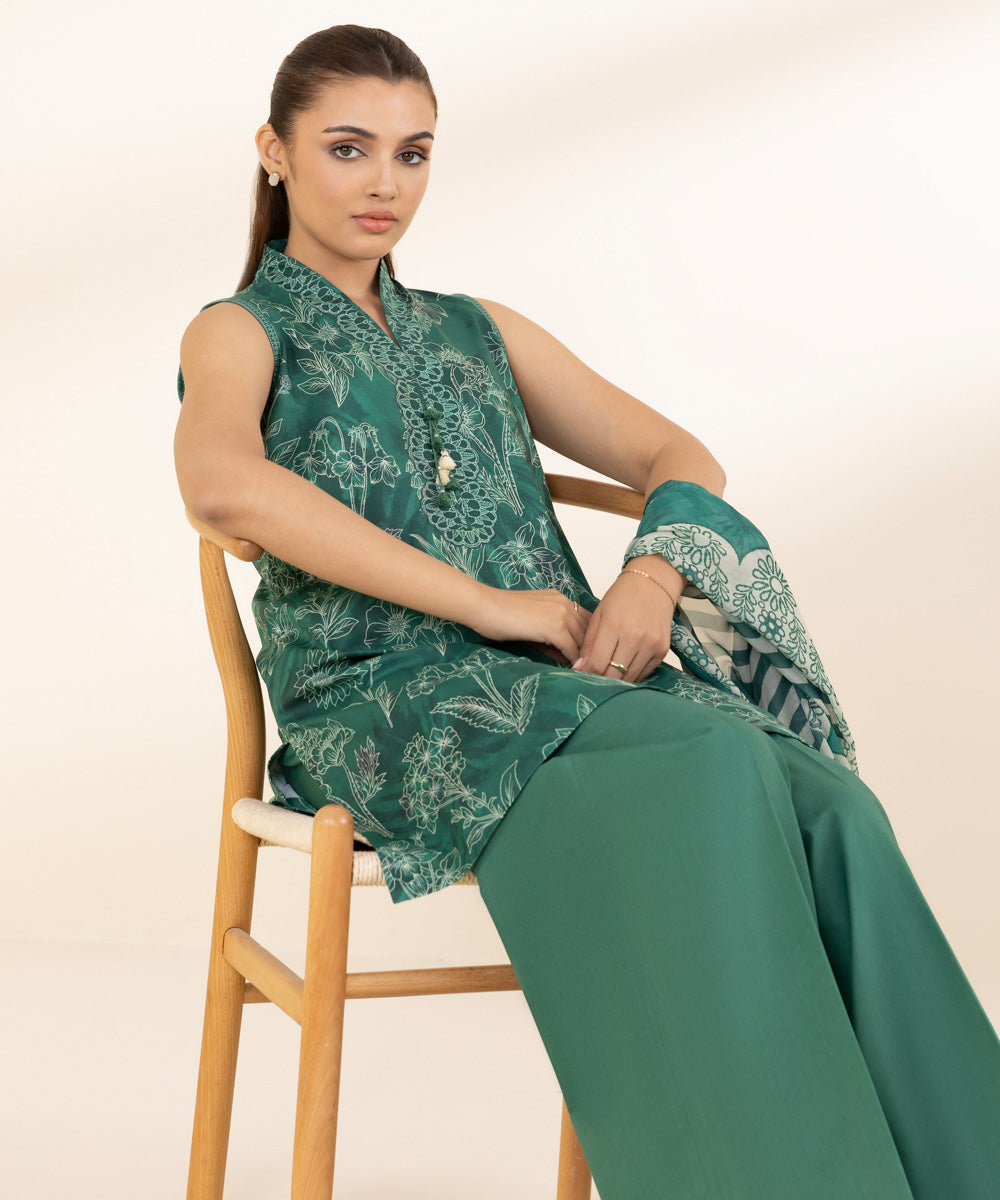 Make a statement with our two-piece ensemble in off white and green featuring a printed lawn shirt paired with a matching blended tissue dupatta.