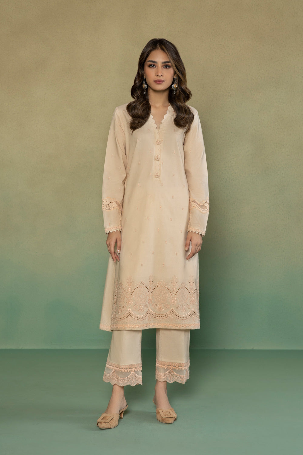 Adorn grace with this one-piece embroidered cambric ensemble featuring intricate embroidered detailing.