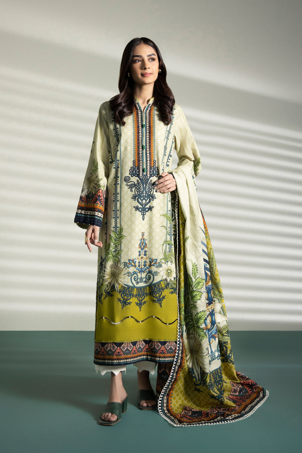 Uplift your look with warm hues of this unstitched digital printed ensemble featuring floral motifs.