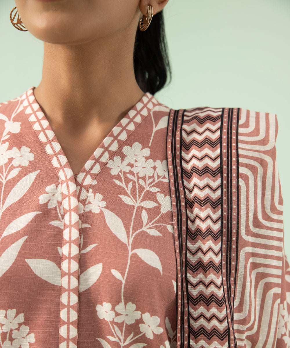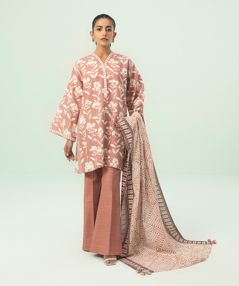 Embrace fall with our powder pink & white hued three-piece ensemble accented with intricate floral patterns.