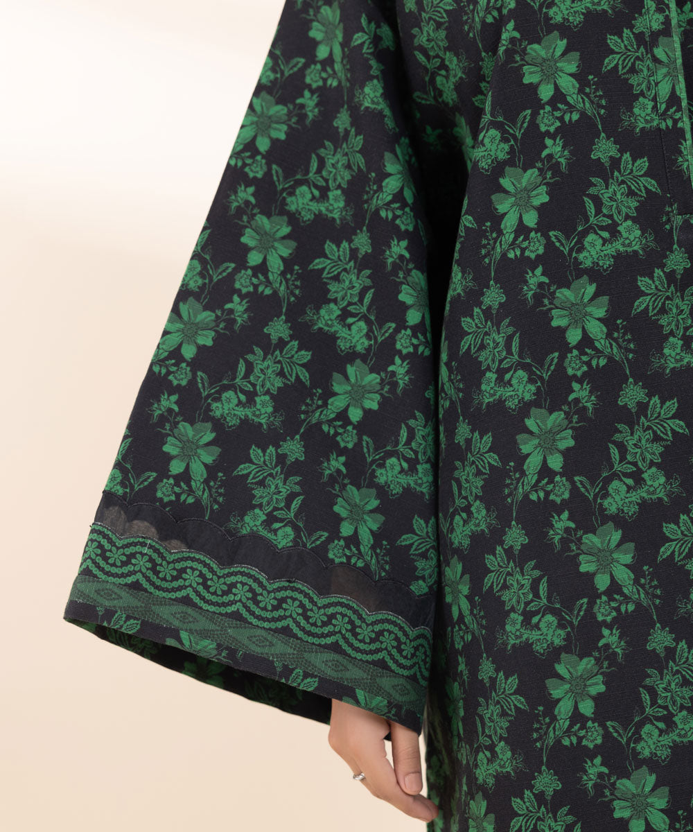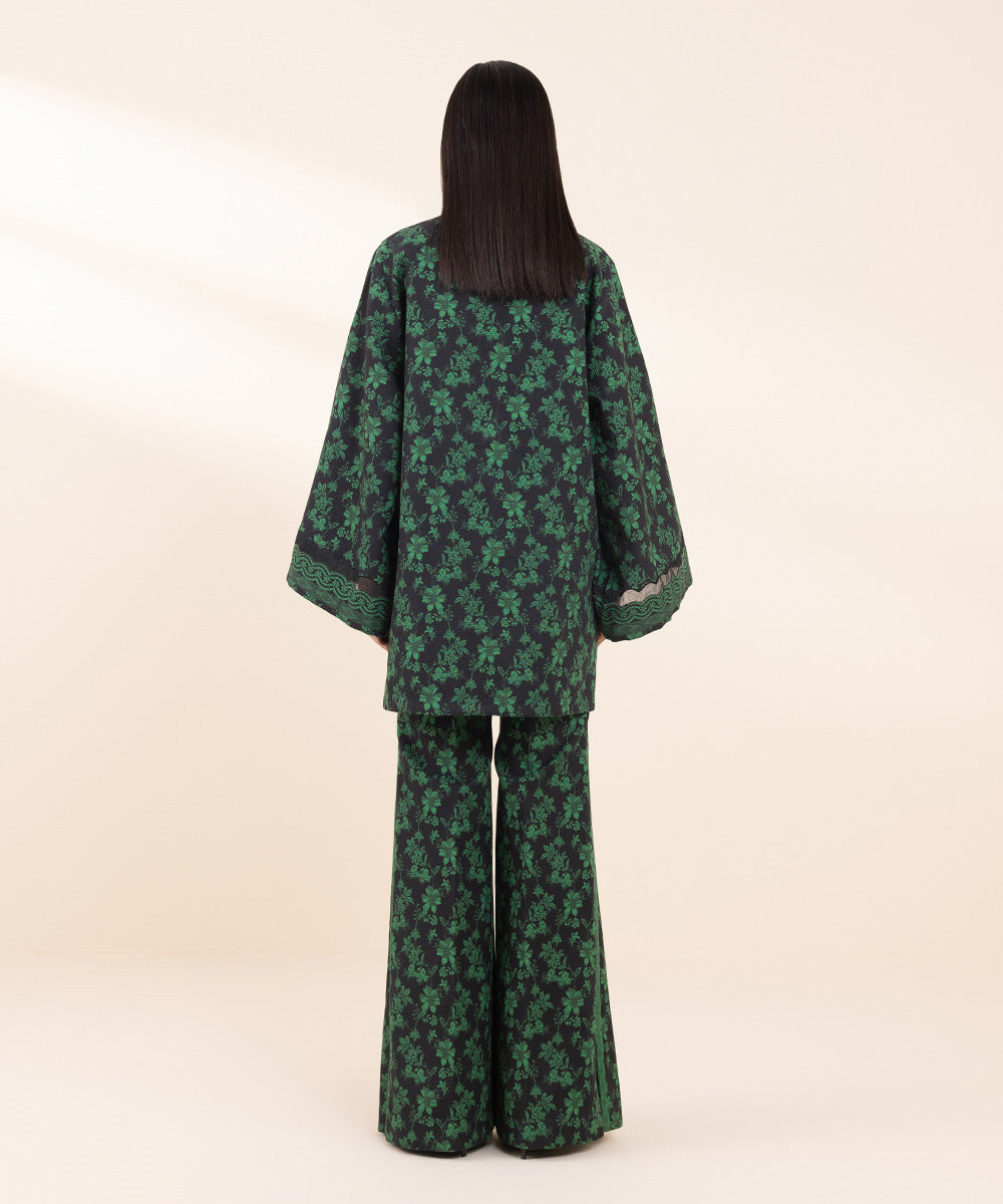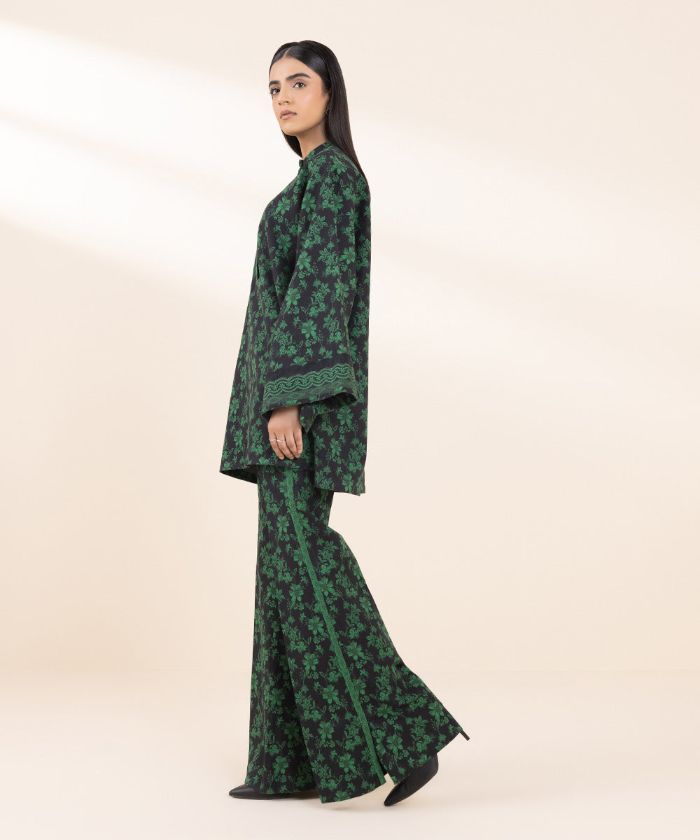 Amp up your winter fashion with our two-piece printed kelly green & black khaddar shirt and trousers.