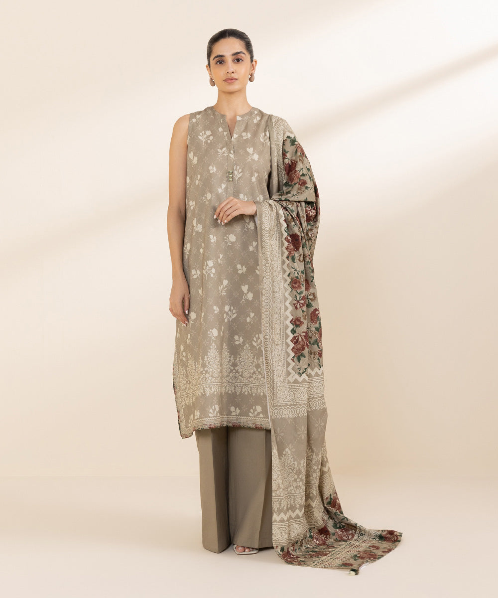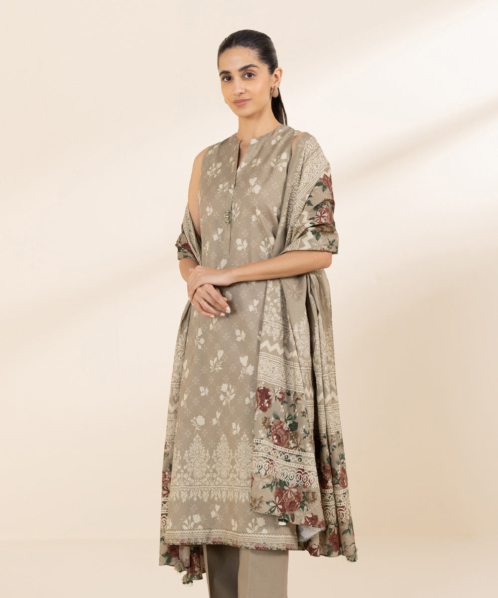 Elevate your fall aesthetic with our printed fawn two-piece featuring a cotton viscose shirt and dupatta.