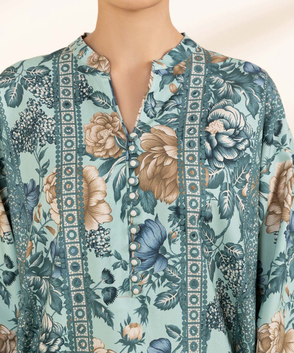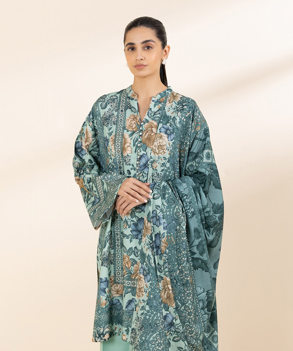 Embrace winter chic in our cyan One-piece linen printed ShirtUnstitched 1-Piece Shirt: Printed Linen Shirt 3M Fabric: LinenColour: Cyan
