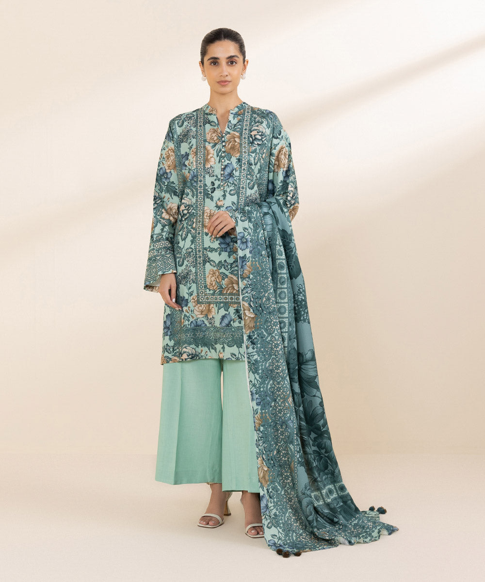 Make a statement with our two-piece printed olive green ensemble featuring a light khaddar shirt and trousers.splitUnstitched 2-PieceShirtPrinted Light Khaddar Shirt 2.3mFabric: Light KhaddarColour: Olive Green TrouserPrinted Light Khaddar Trouser 2.5mFabric: Light KhaddarColour: Olive Green
