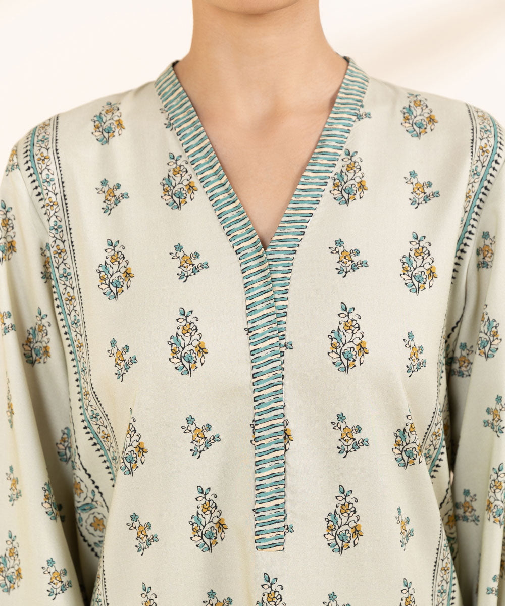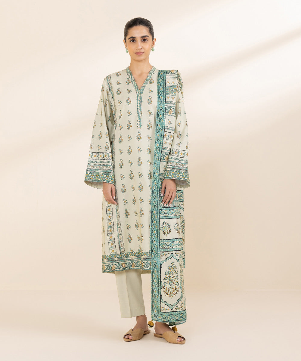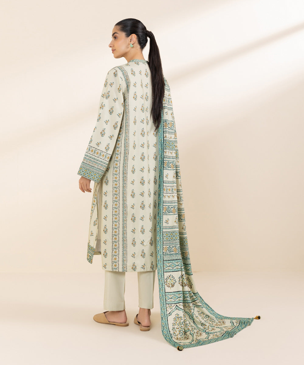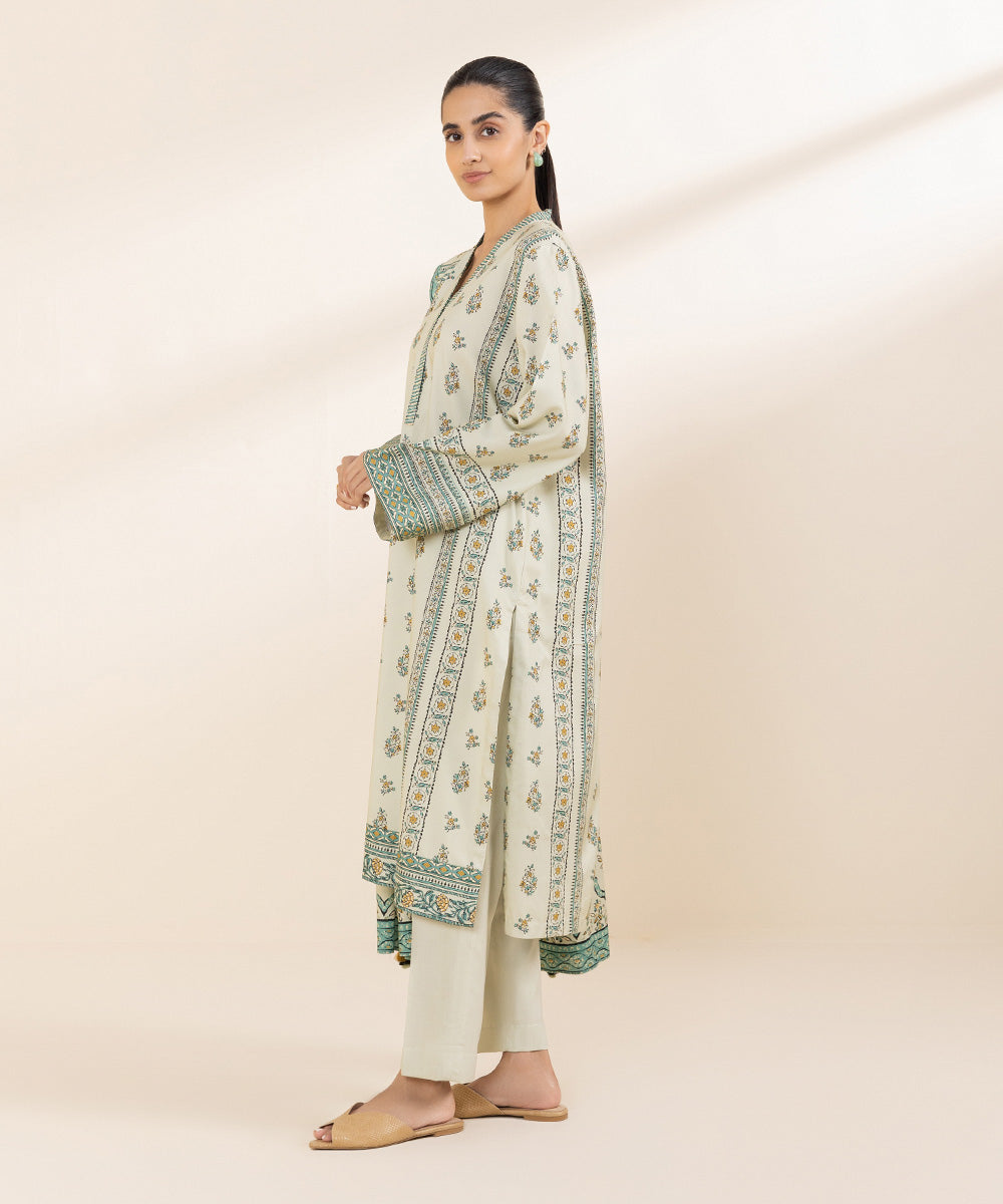Embrace winter chic in our ivory and marine blue onne-piece linen printed shirtUnstitched 1-Piece Shirt: Printed Linen Shirt 3M Fabric: LinenColour: Ivory