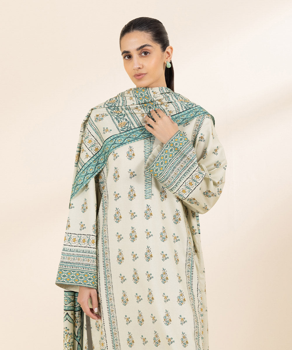 Step out confidently this fall in our printed fern green and black one-piece featuring a khaddar shirtUnstitched 1-Piece Shirt: Printed Linen Jacquard Shirt 3M Fabric: KhaddarColour: Fern Green & Black