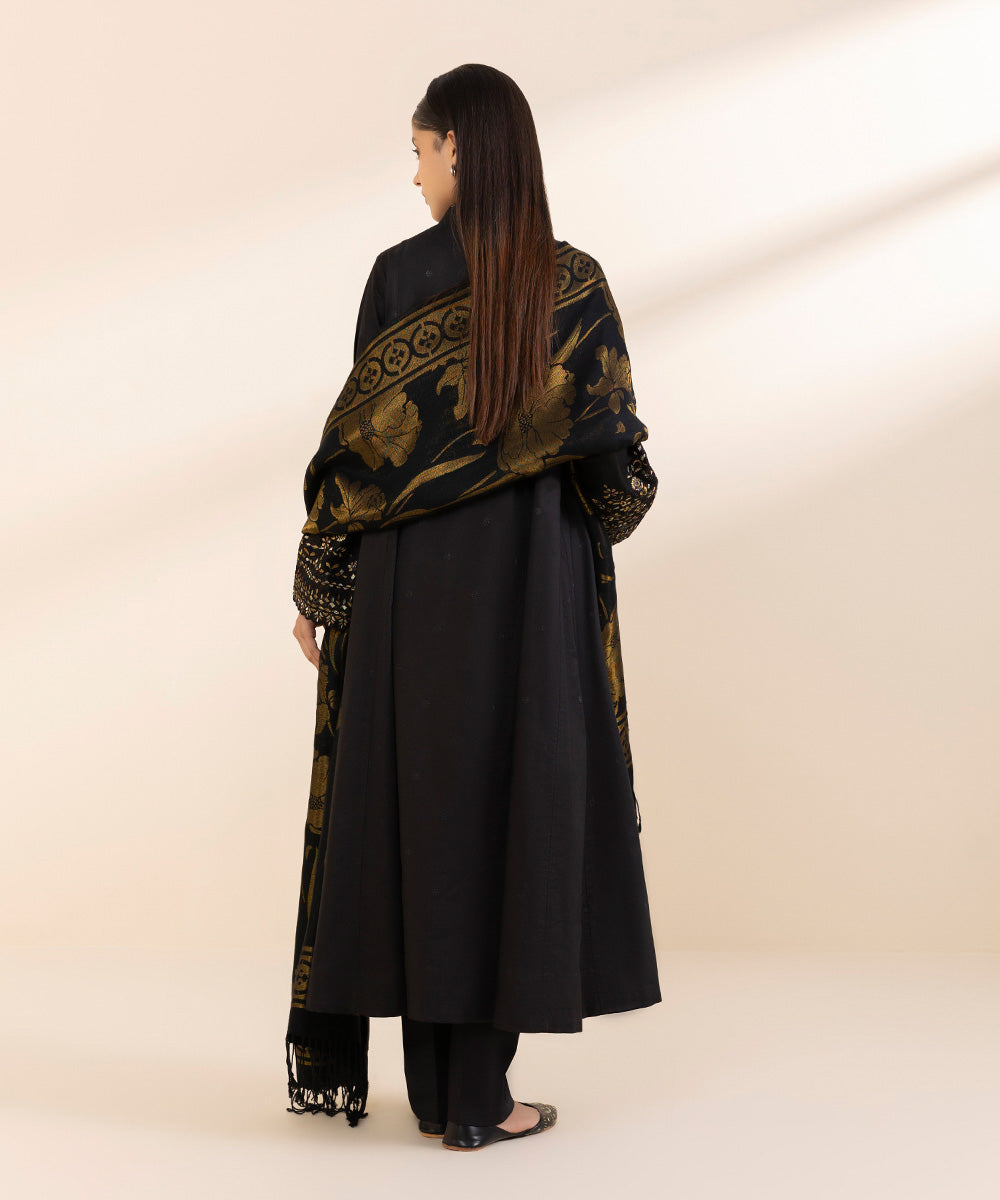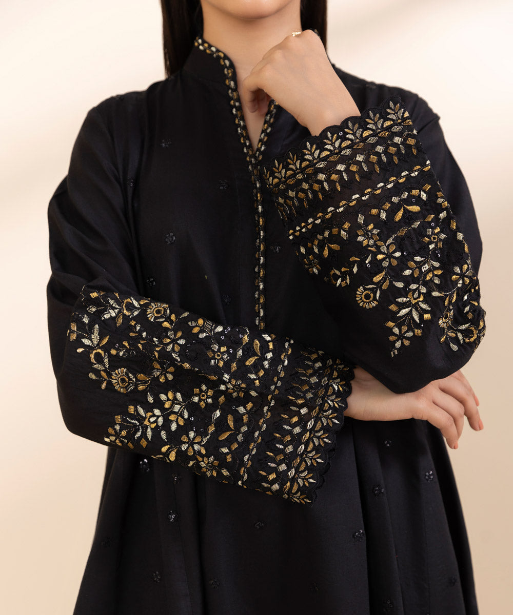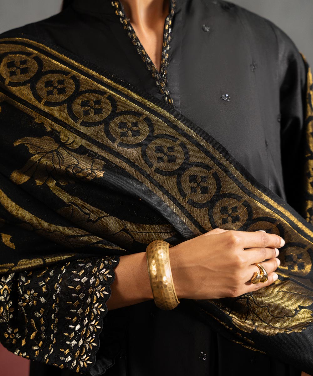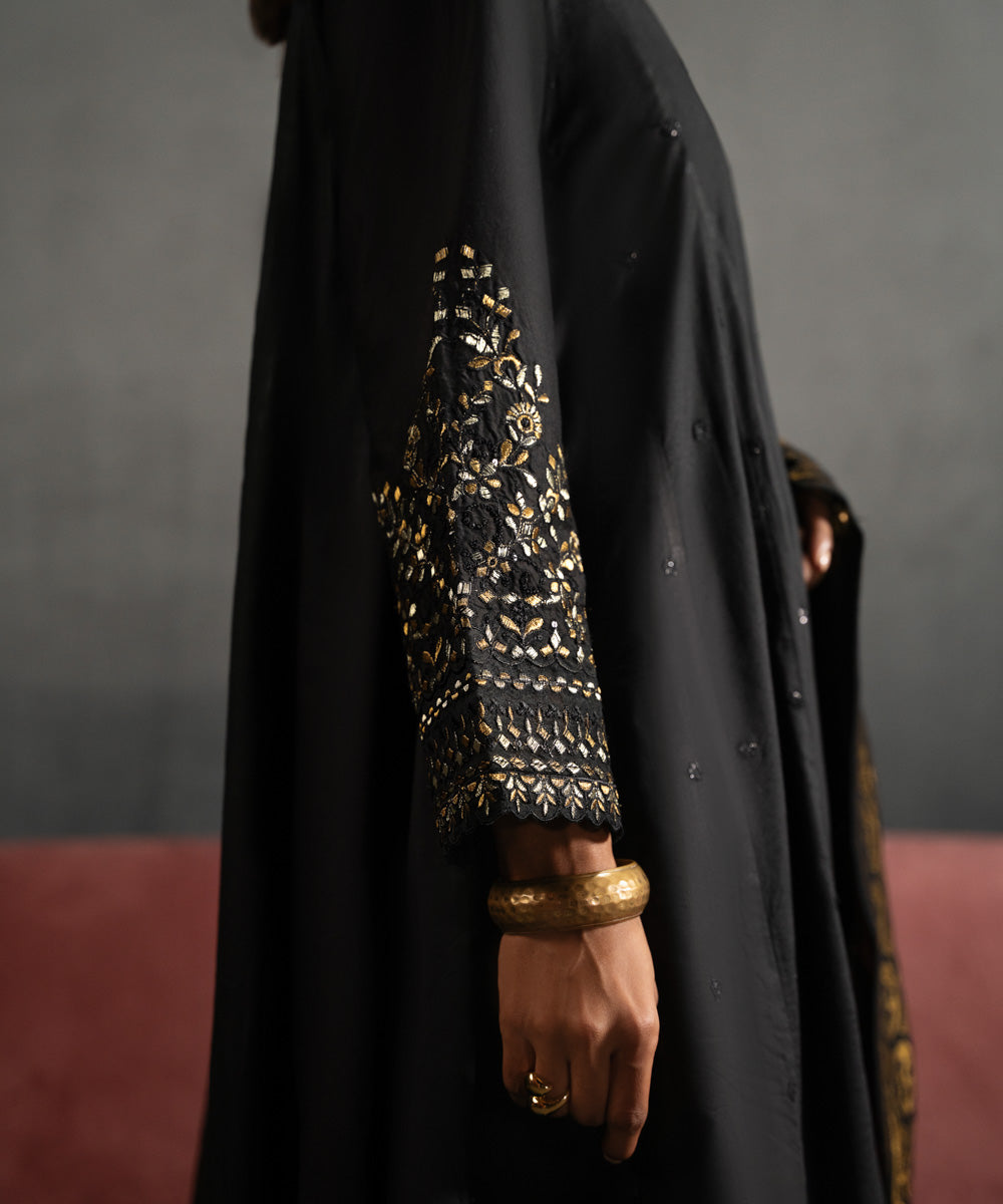 Make a statement this winter in our two-piece embroidered, black linen suit with a trouser