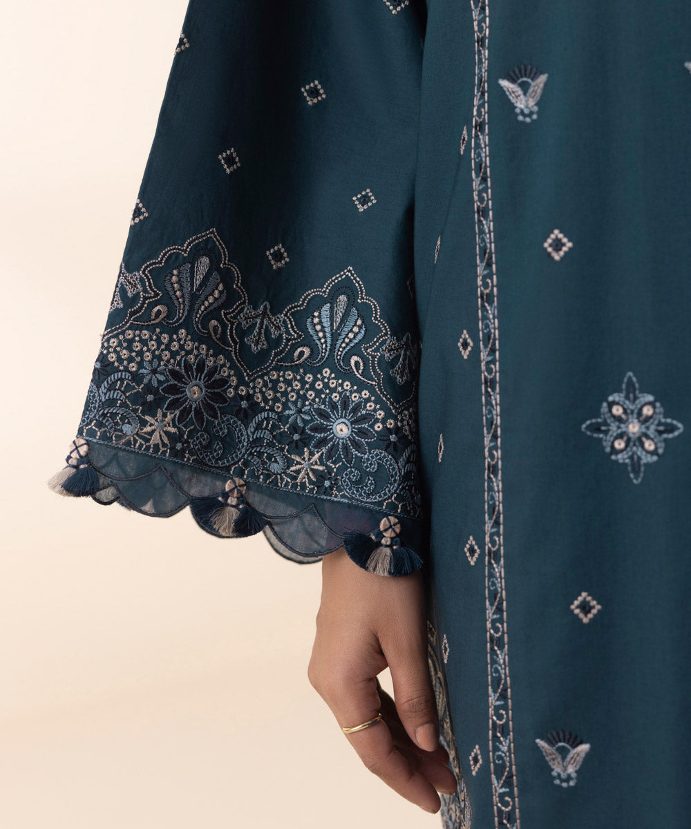 Dyed Embroidered Cotton Shirt Front Panels 3pc