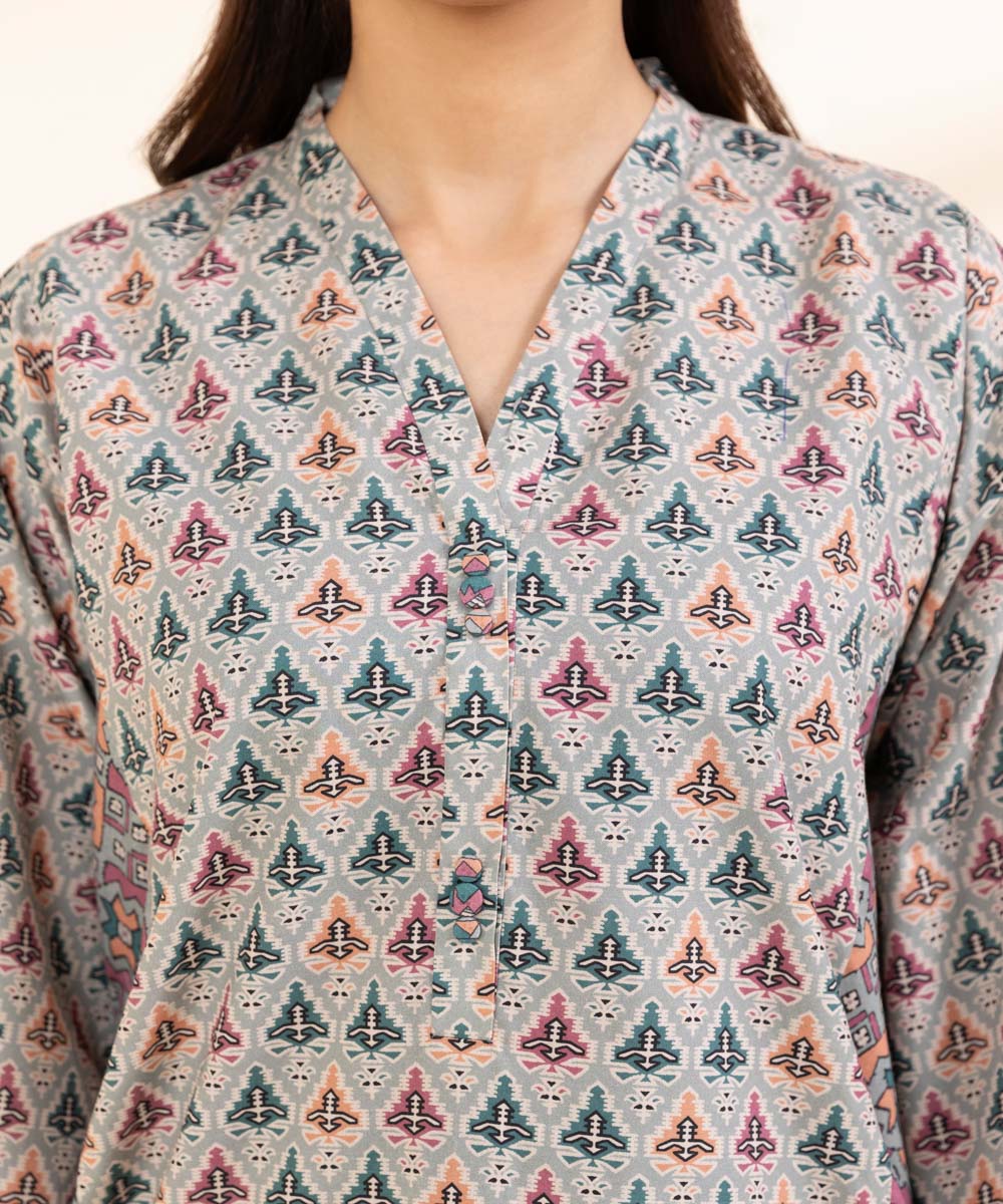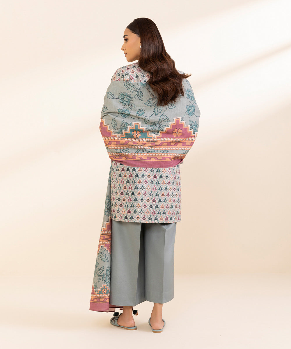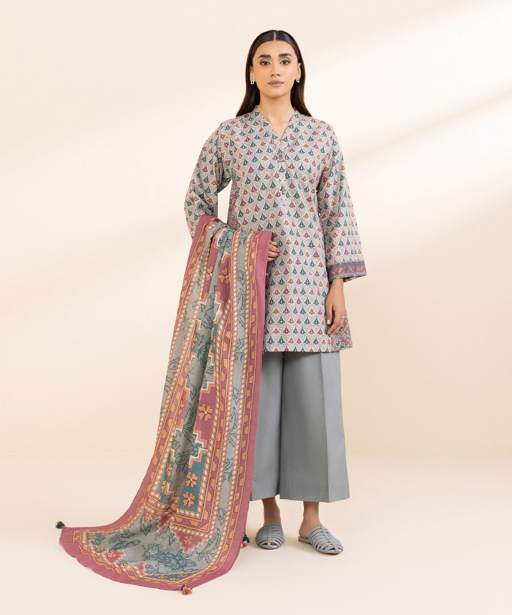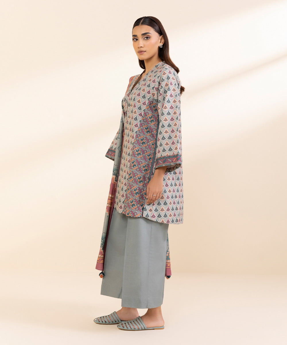 Curate the perfect winter outfit with our two-piece multicoloured and light grey printed self jacquard shirt and cambric trousers