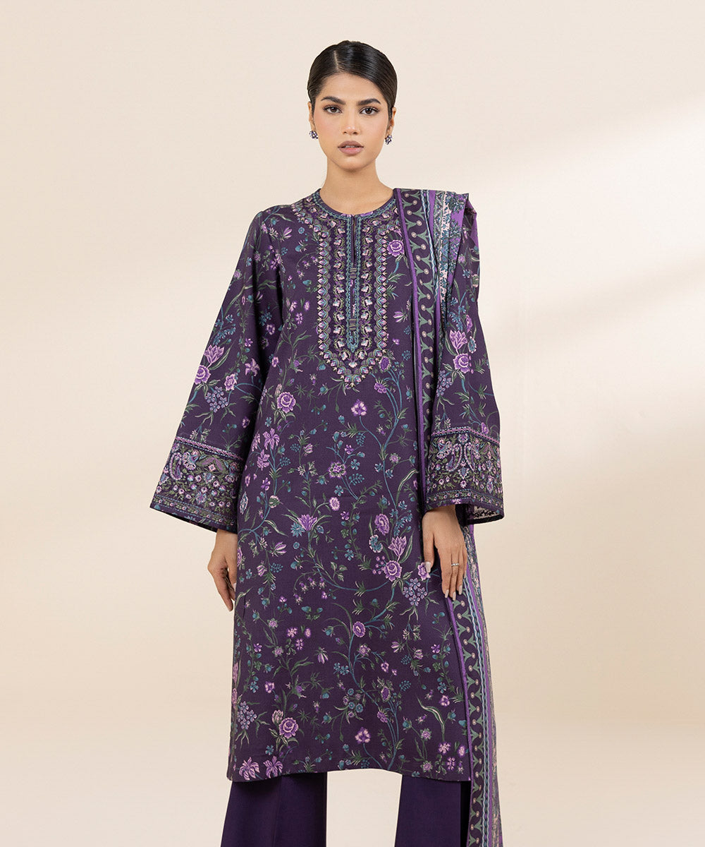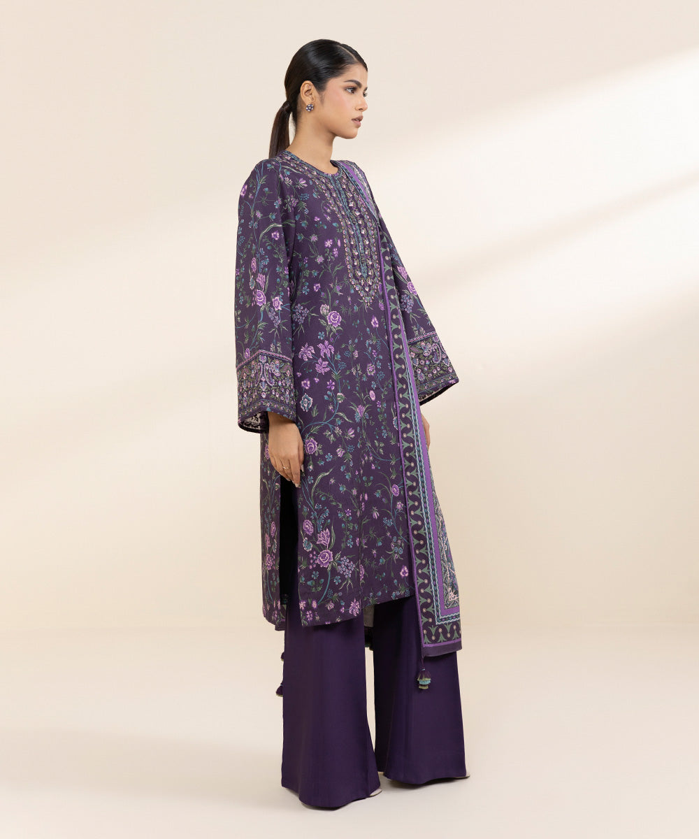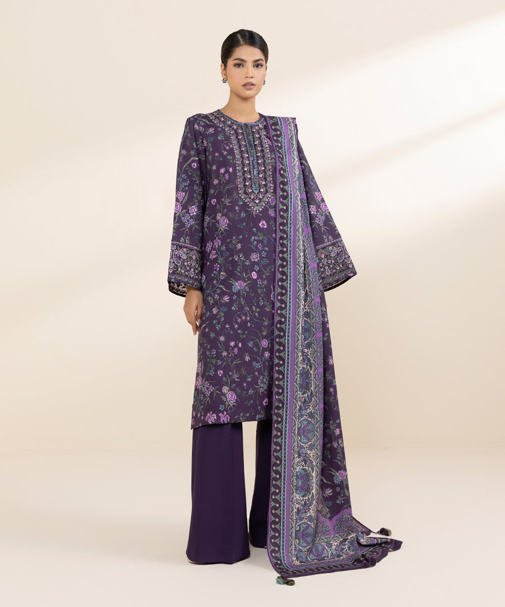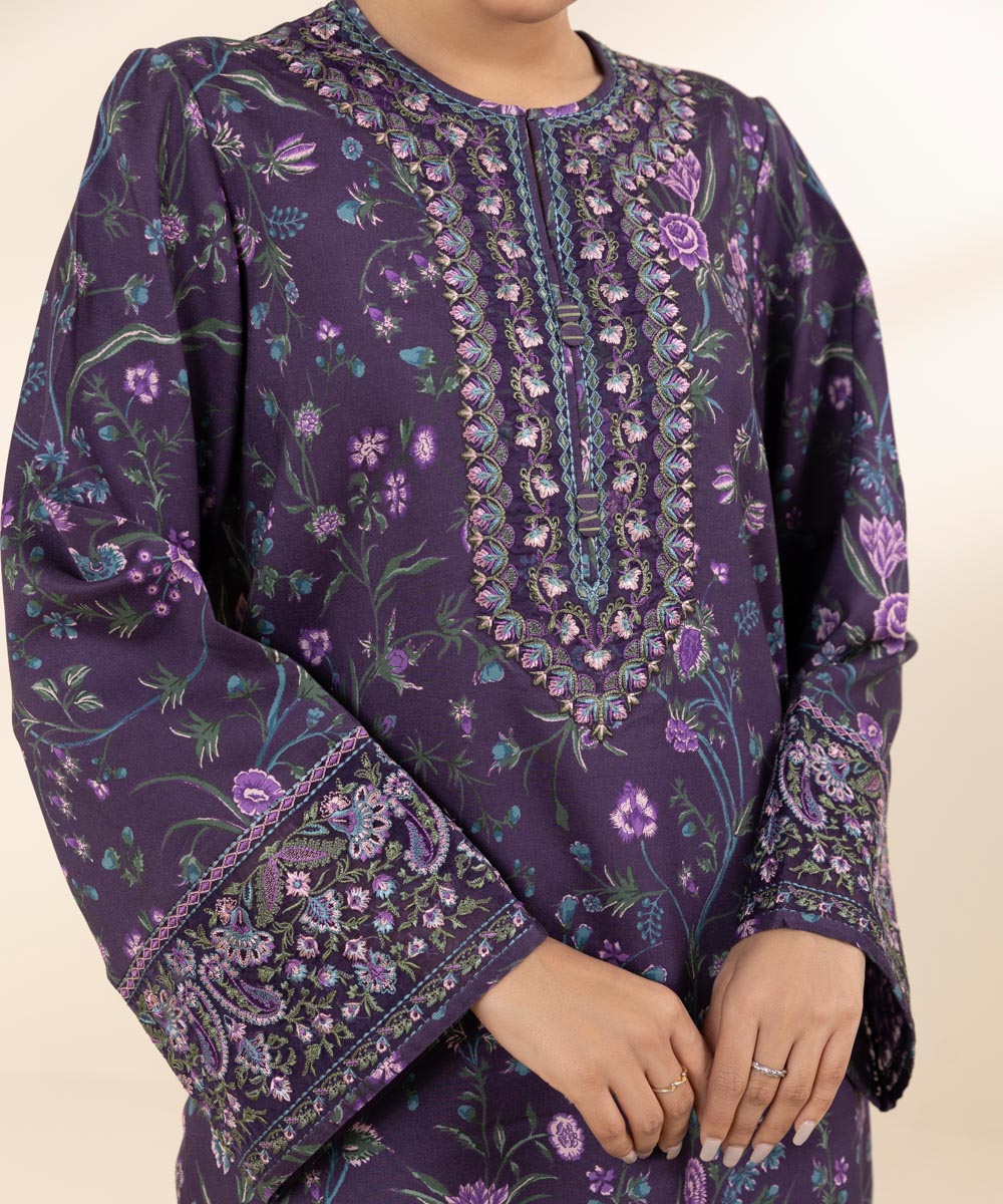 Curate the perfect winter outfit with our two-piece purple and light grey printed khaddar shirt with trouserUnstitched 2-Piece Shirt: Printed Khaddar Shirt 3M Fabric: KhaddarColour: Purple Trousers: Dyed Khaddar Trouser 2.5M Fabric: KhaddarColour: Purple