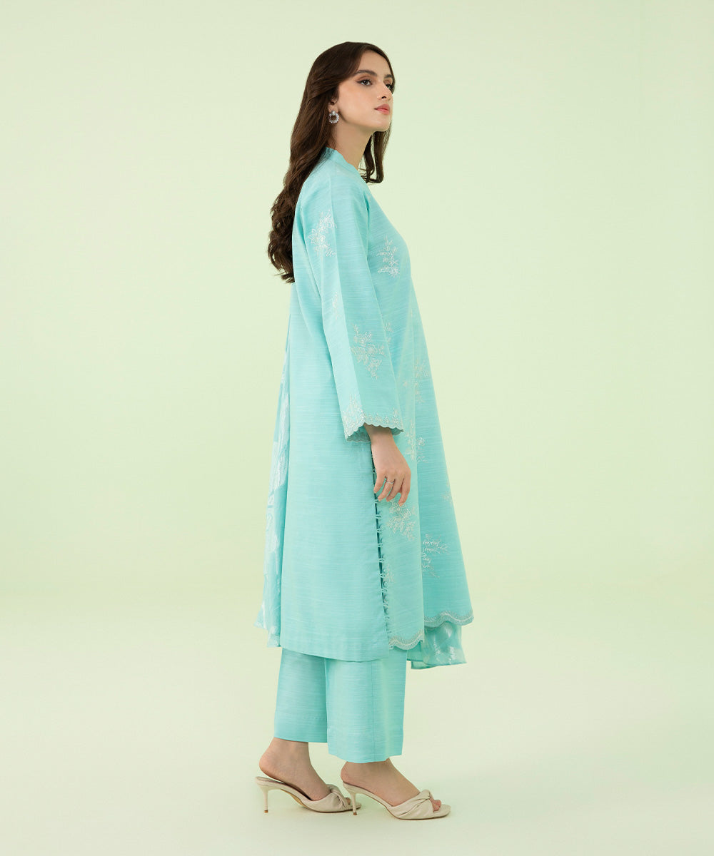 Embrace winter chic in our teal two-piece linen embroidered shirt with trousers.Unstitched 2-Piece Shirt: Dyed Embroidered Linen Shirt Fabric: LinenColour: Teal Trousers: Dyed Embroidered Linen Trouser 2PC Fabric: LinenColour: Teal
