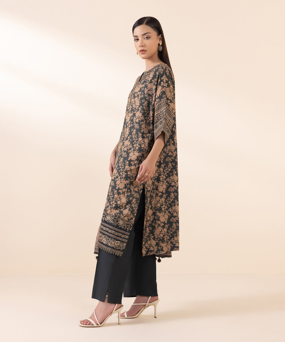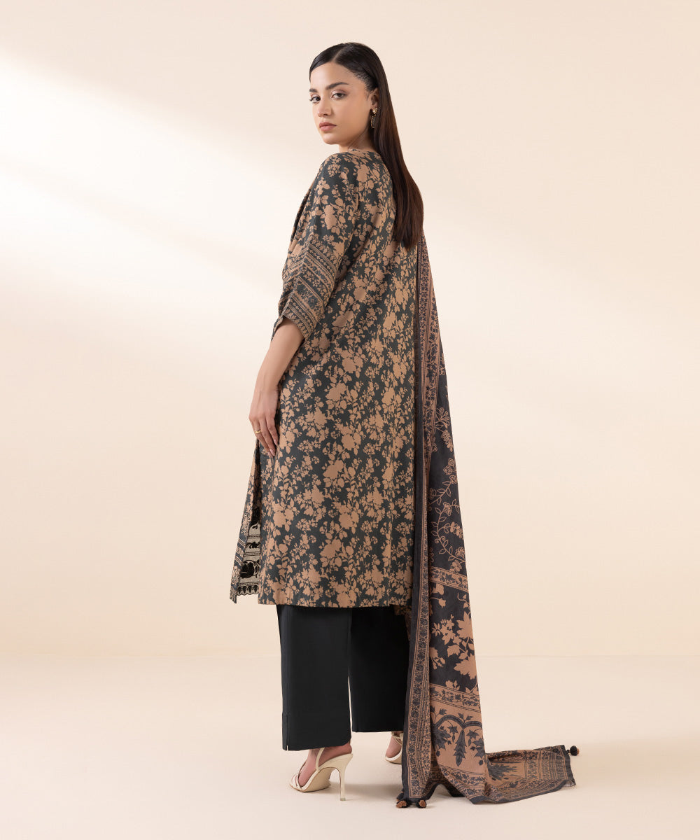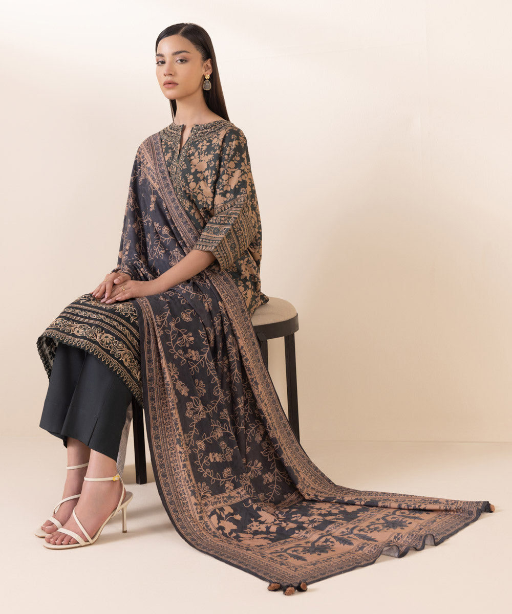Embrace winter chic in our dusty pink and charcoal grey two-piece linen printed suit with solid trousers.