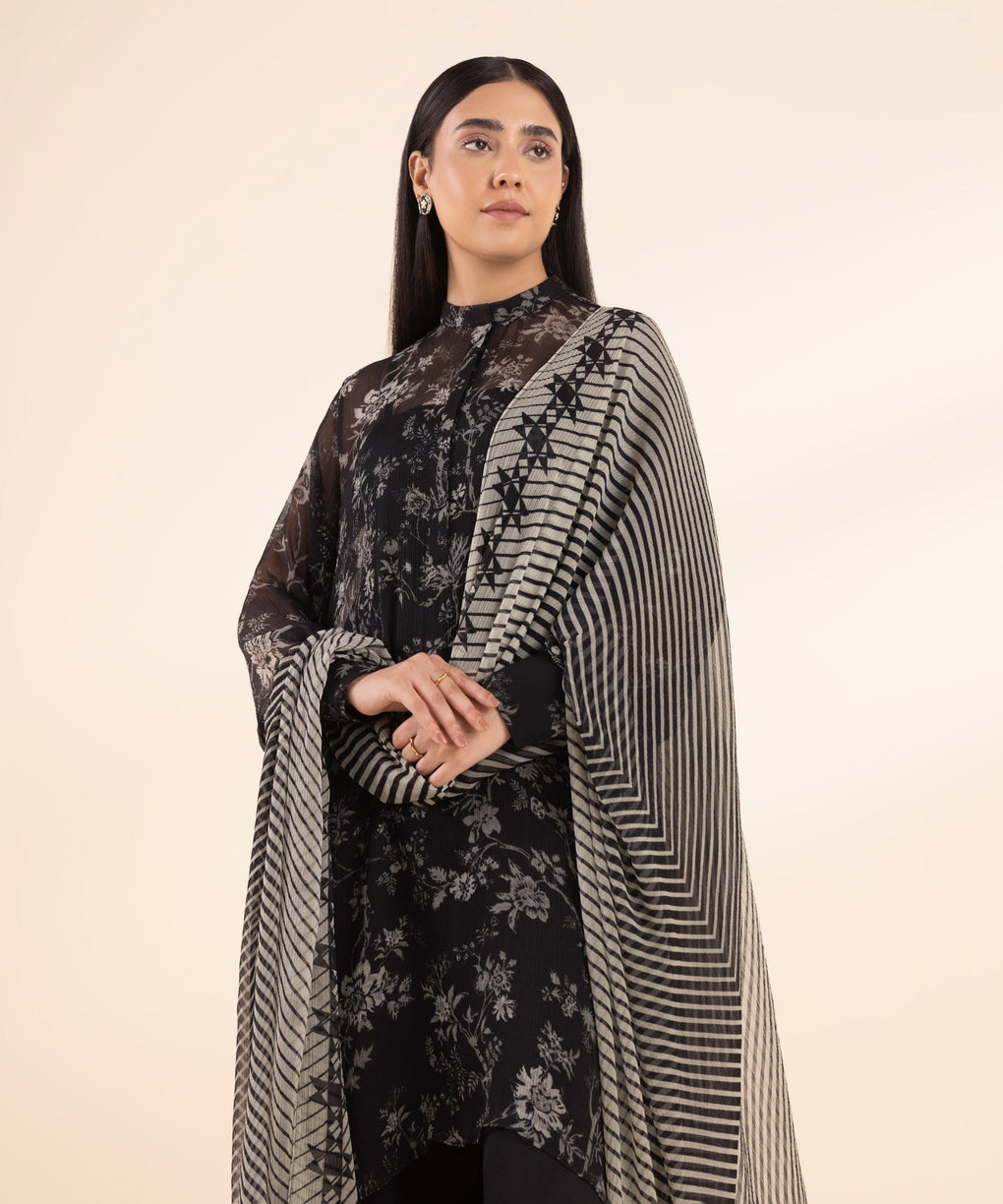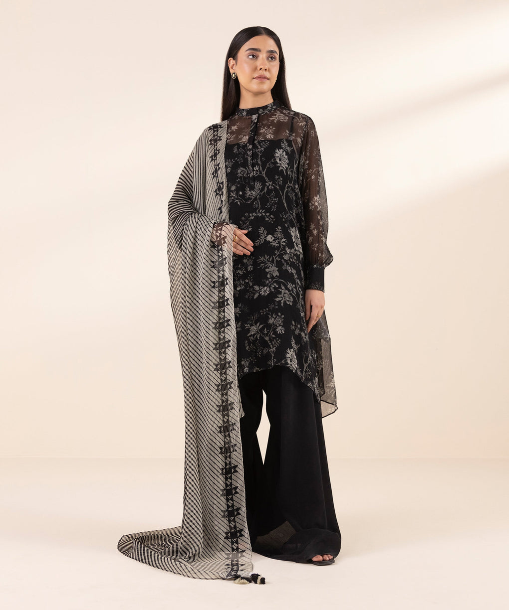 3 Piece - Printed Chiffon Suit