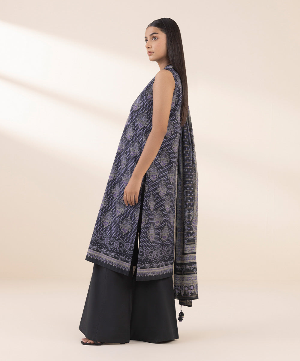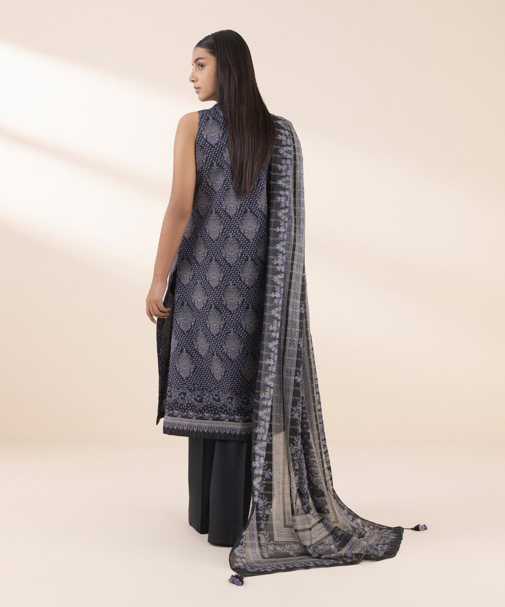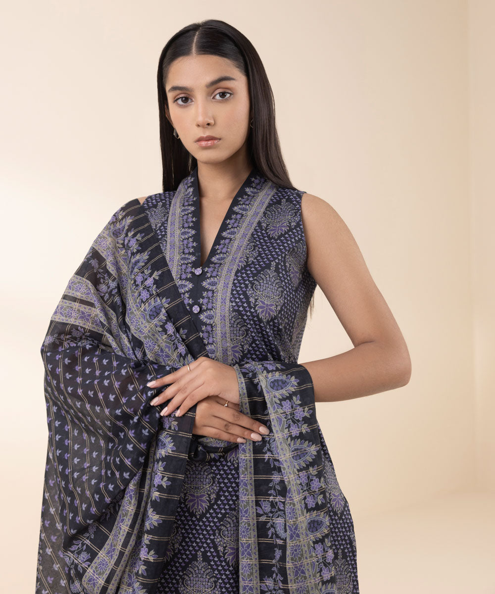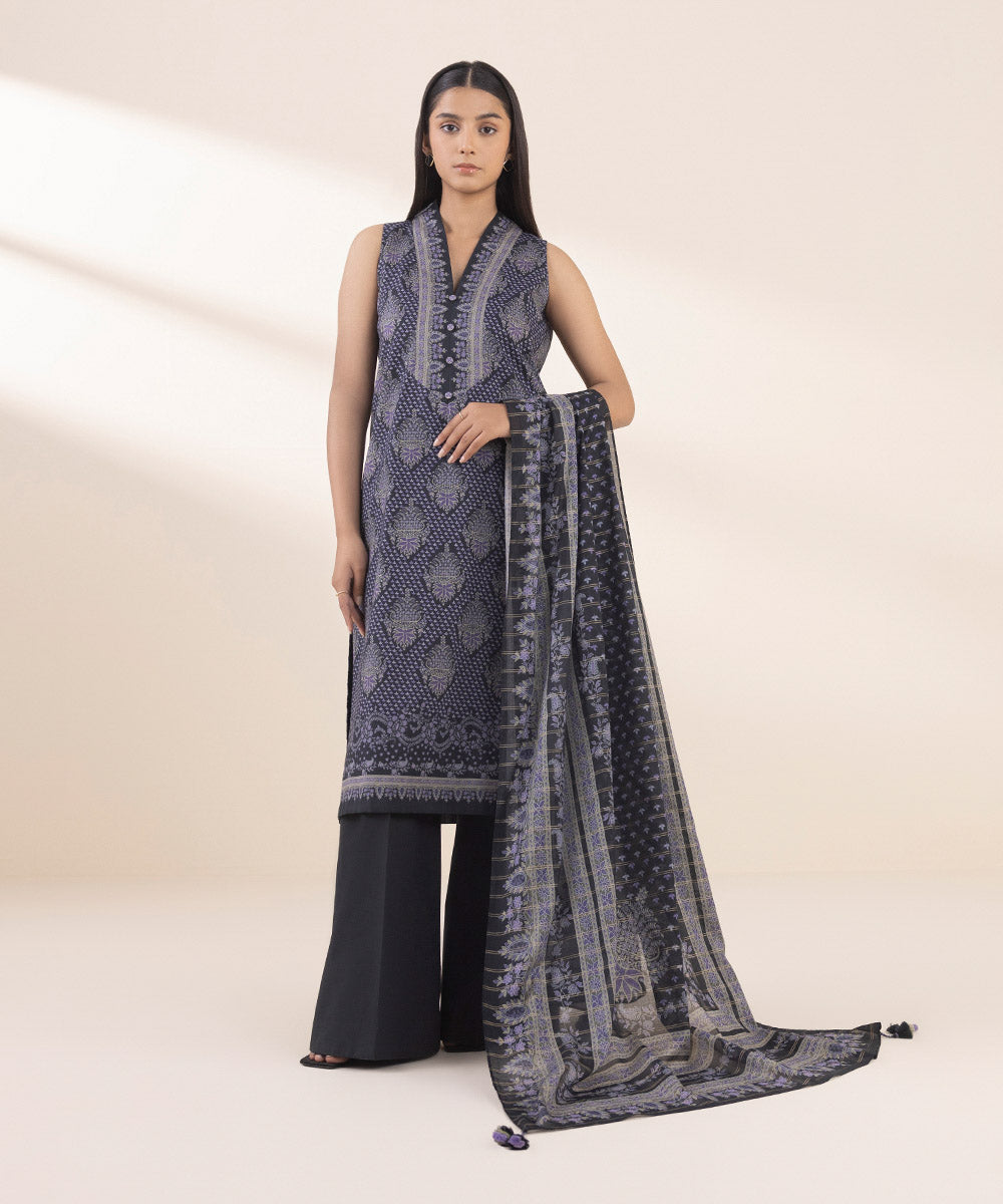 Make a statement in our printed lawn black shirt, matching zari voile dupatta