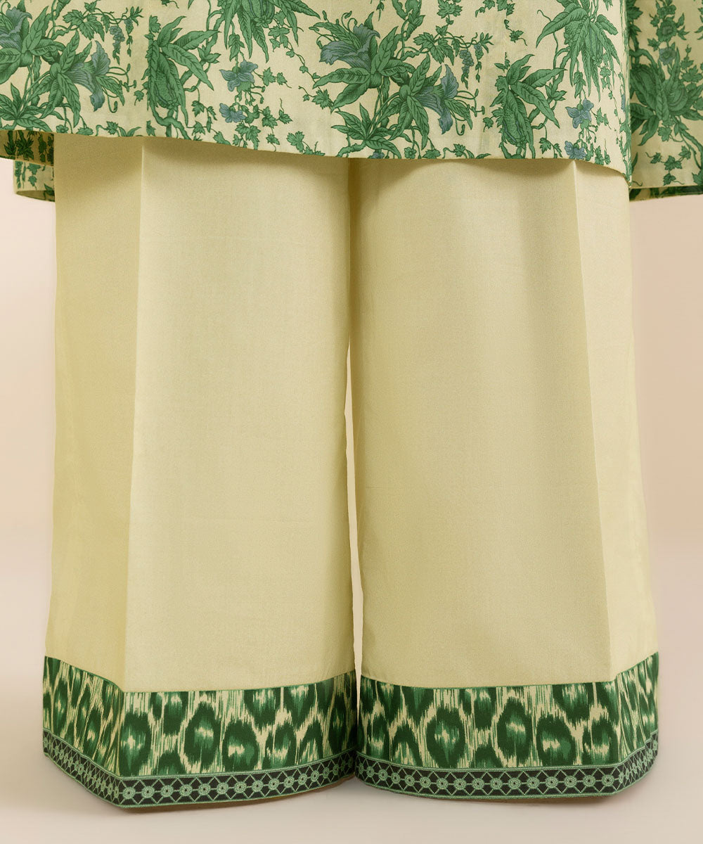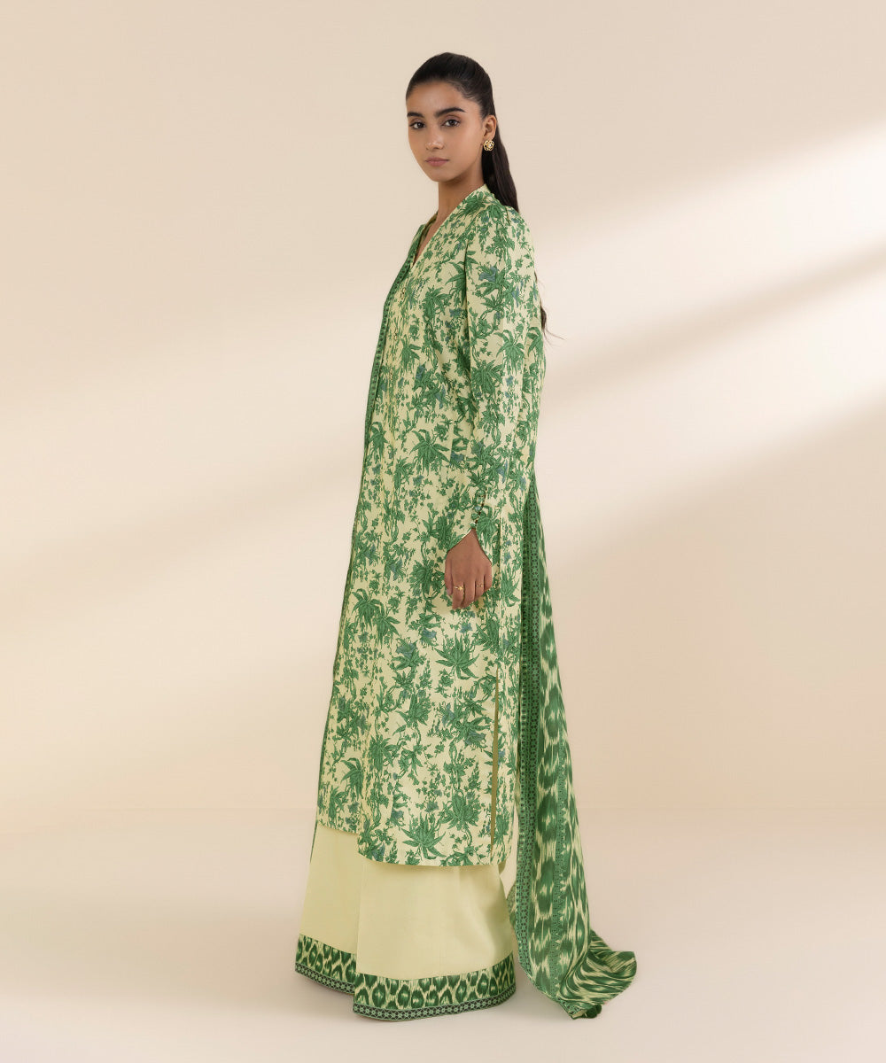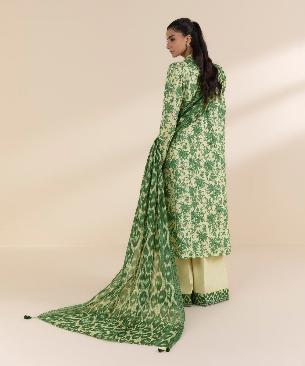 Elevate your wardrobe in our printed creamy off white lawn shirt paired and cotton trousers.