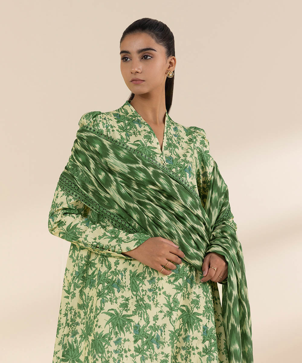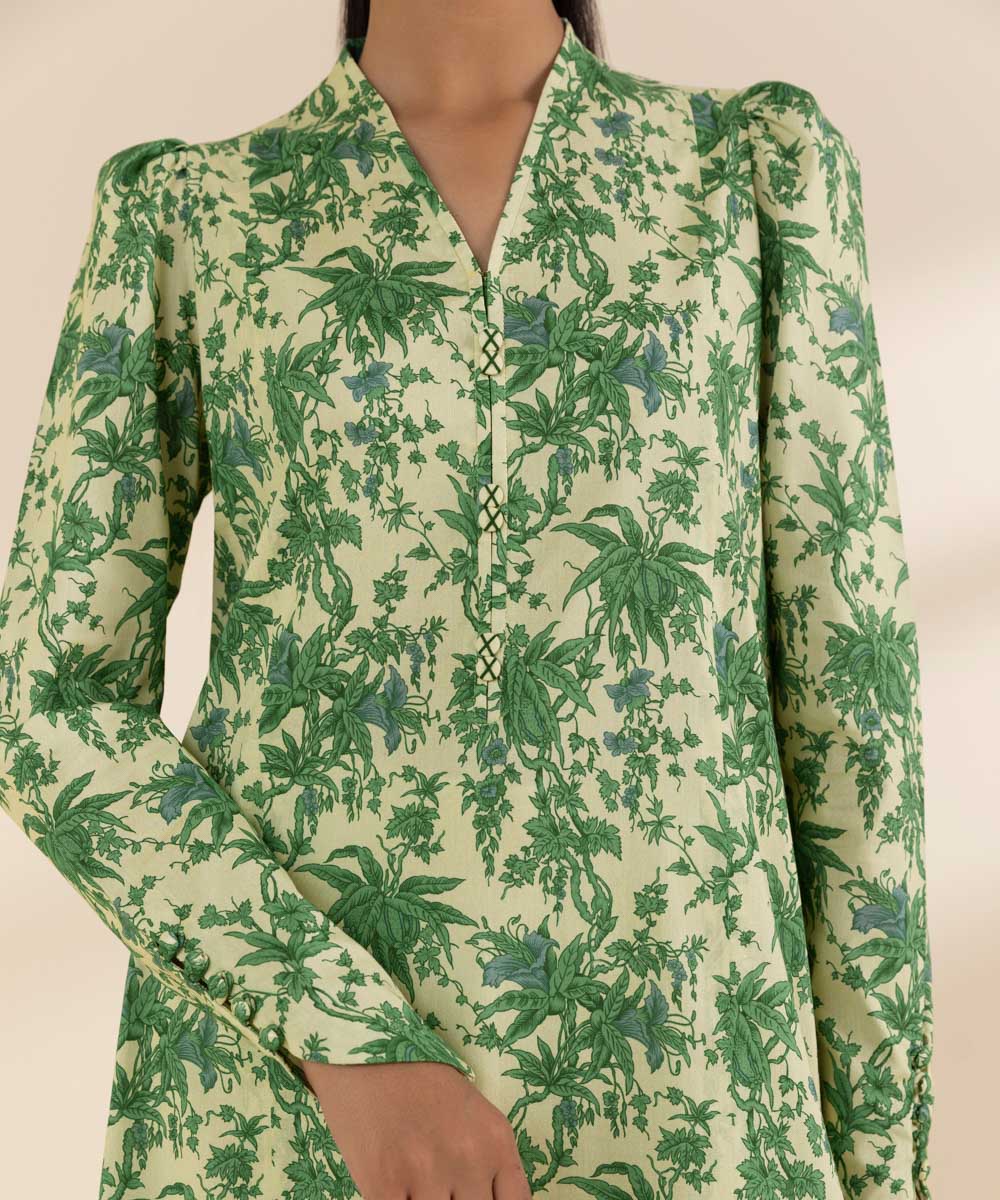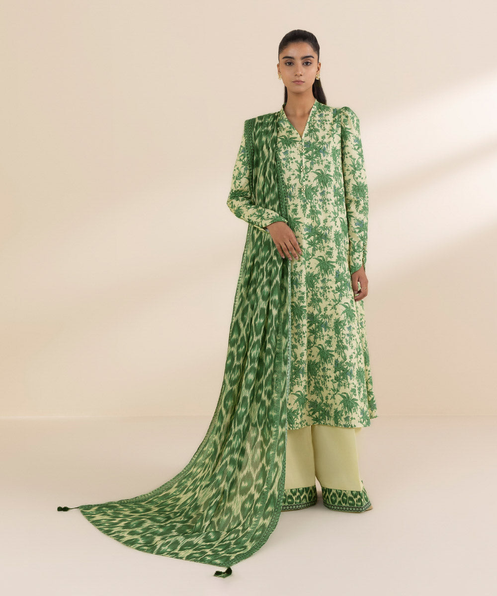 Elevate your wardrobe in our printed creamy off white lawn shirt paired and cotton trousers.