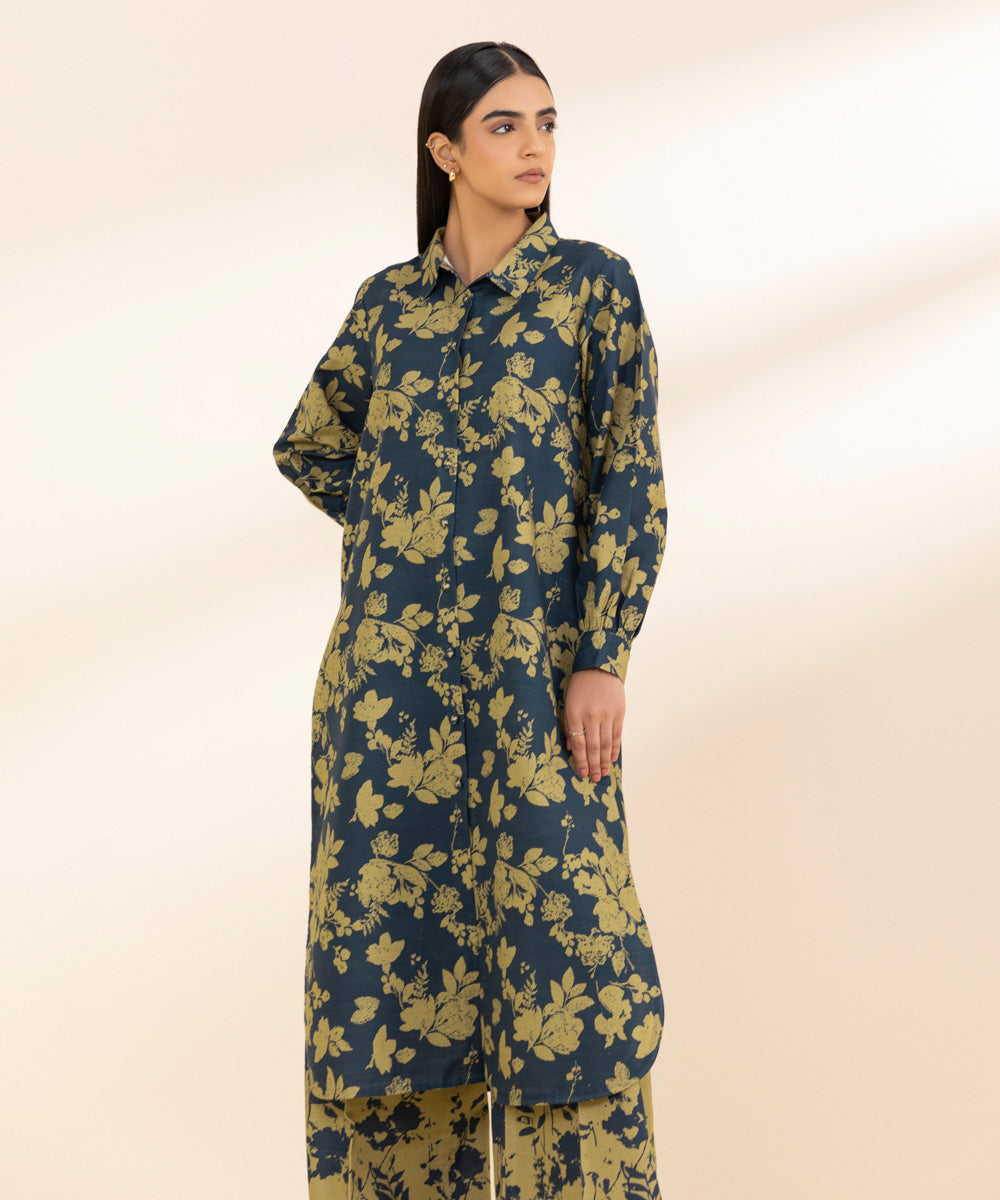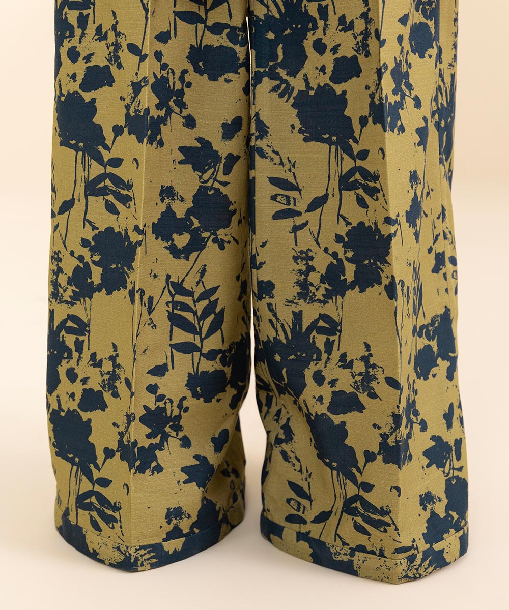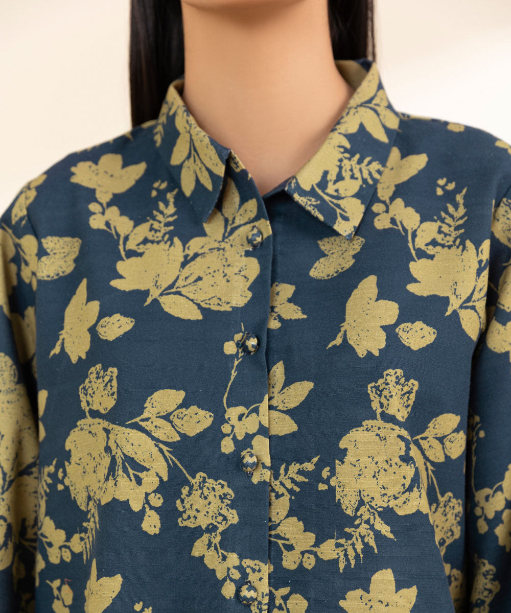 Make a statement with our olive and charcoal black two-piece printed light khaddar ensemble featuring floral prints.