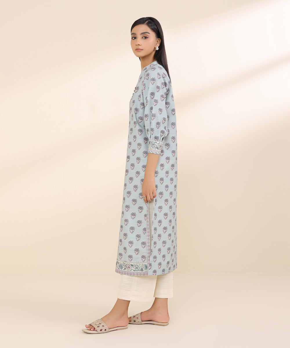 Step out confidently this fall in our printed dark purple two-piece featuring a khaddar shirt and solid trousers.Unstitched 2-Piece Shirt: Printed Linen Jacquard Shirt 3M Fabric: KhaddarColour: Dark Purple Trousers: Dyed Khaddar Trouser 2.5M Fabric: KhaddarColour: Dark Purple