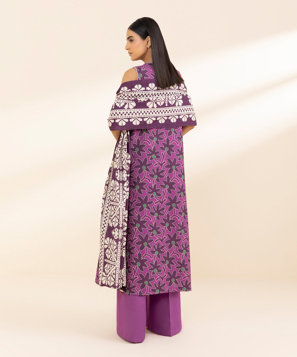 Elevate your style with our mauve and purple two-piece printed khaddar shirt and dupatta.