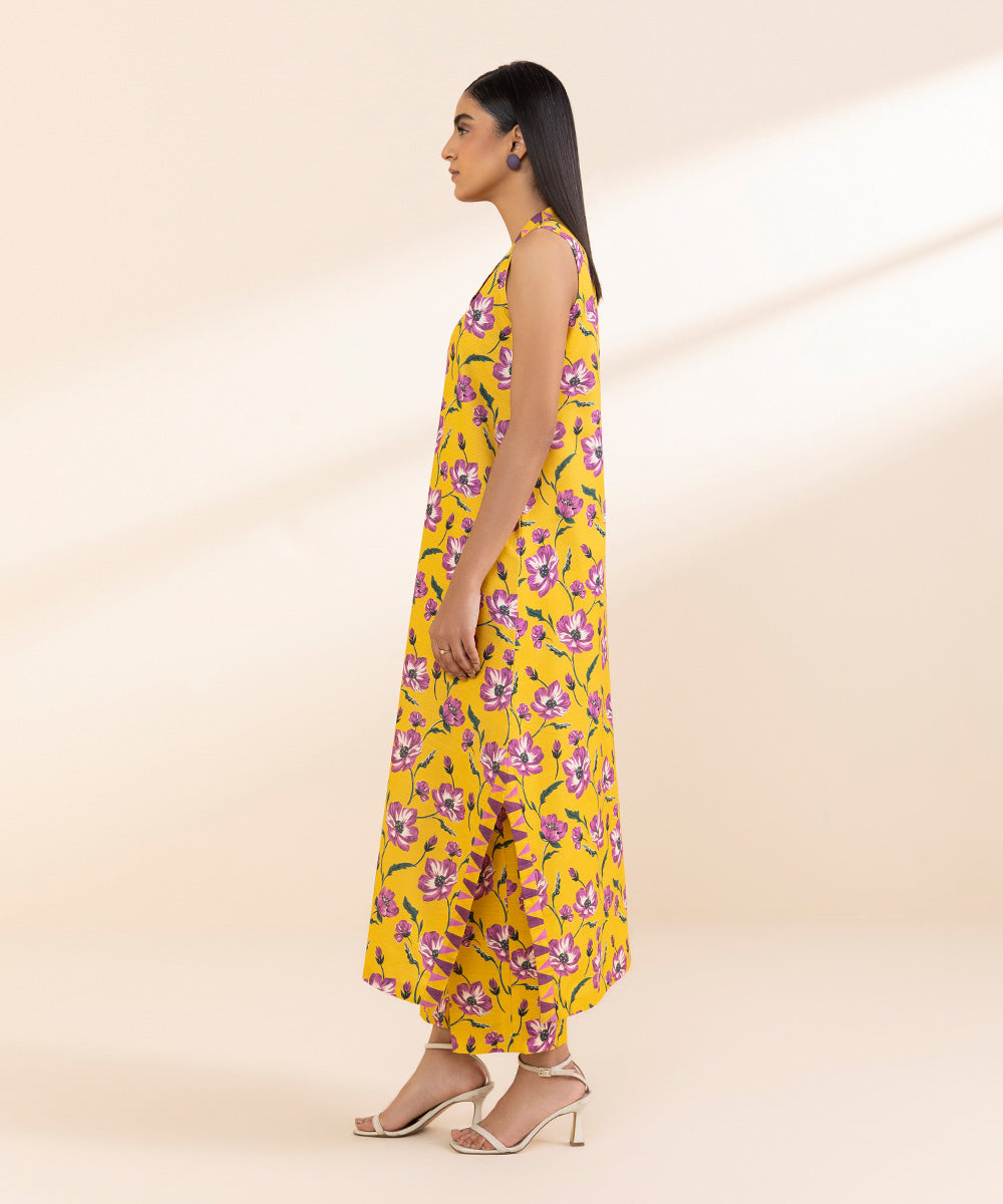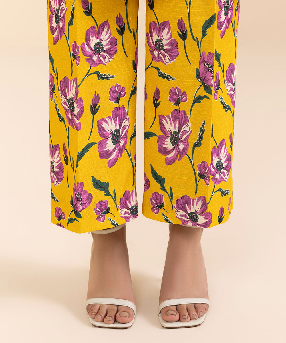 Embrace the subtle elegance of winter in our yellow floral printed two-piece featuring light khaddar shirt and trousers.