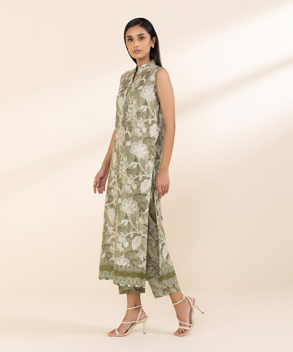 Nail the trendy winter look with our khaddar laurel green two-piece featuring printed shirt and trousers.