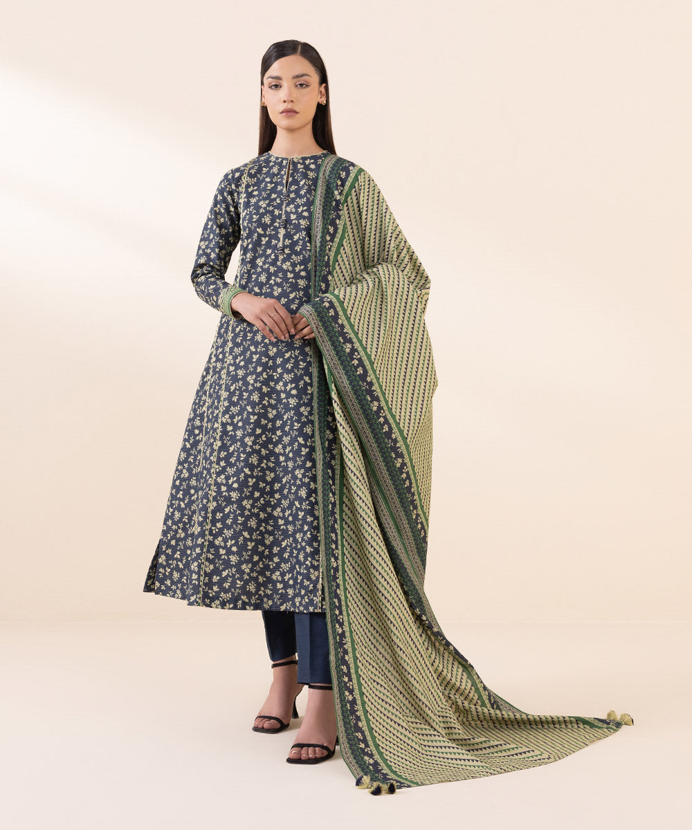 2 Piece - Printed Zari Khaddar Suit