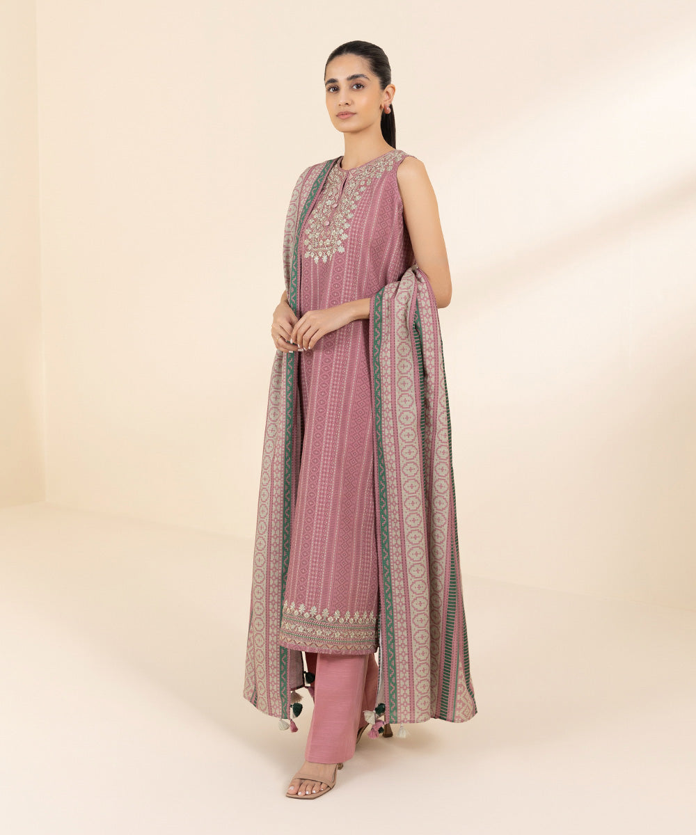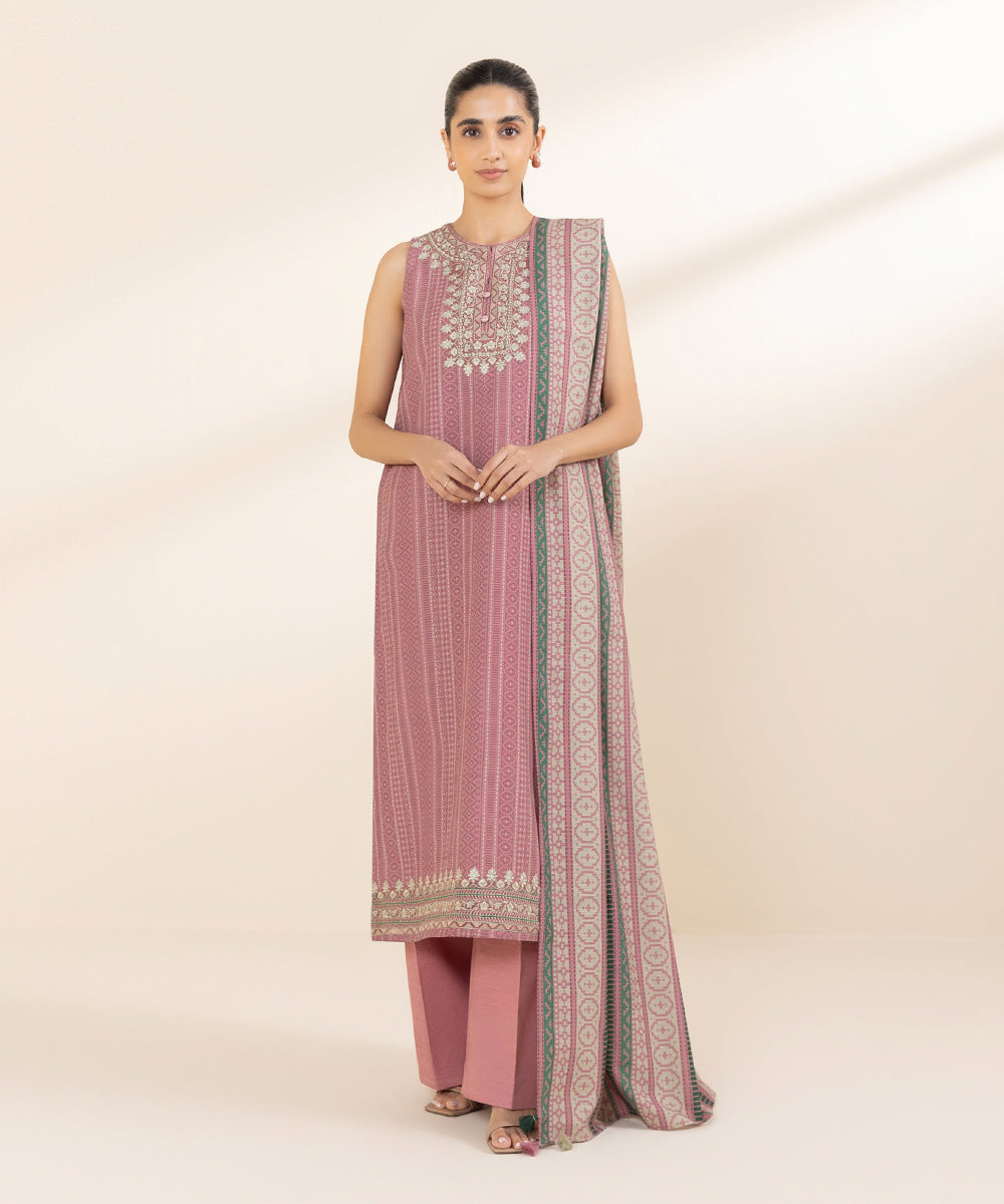 2 Piece - Embroidered Light Khaddar Suit