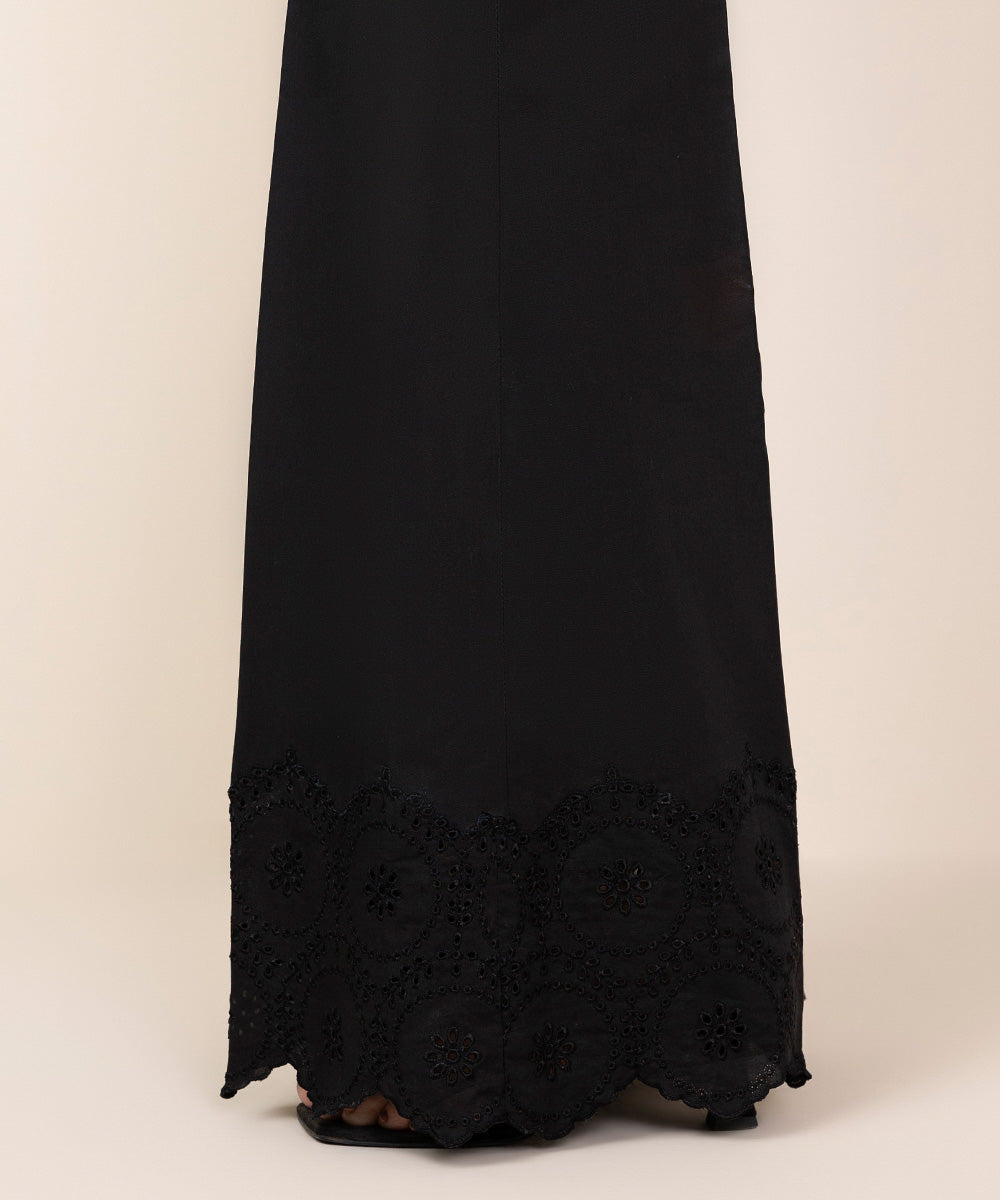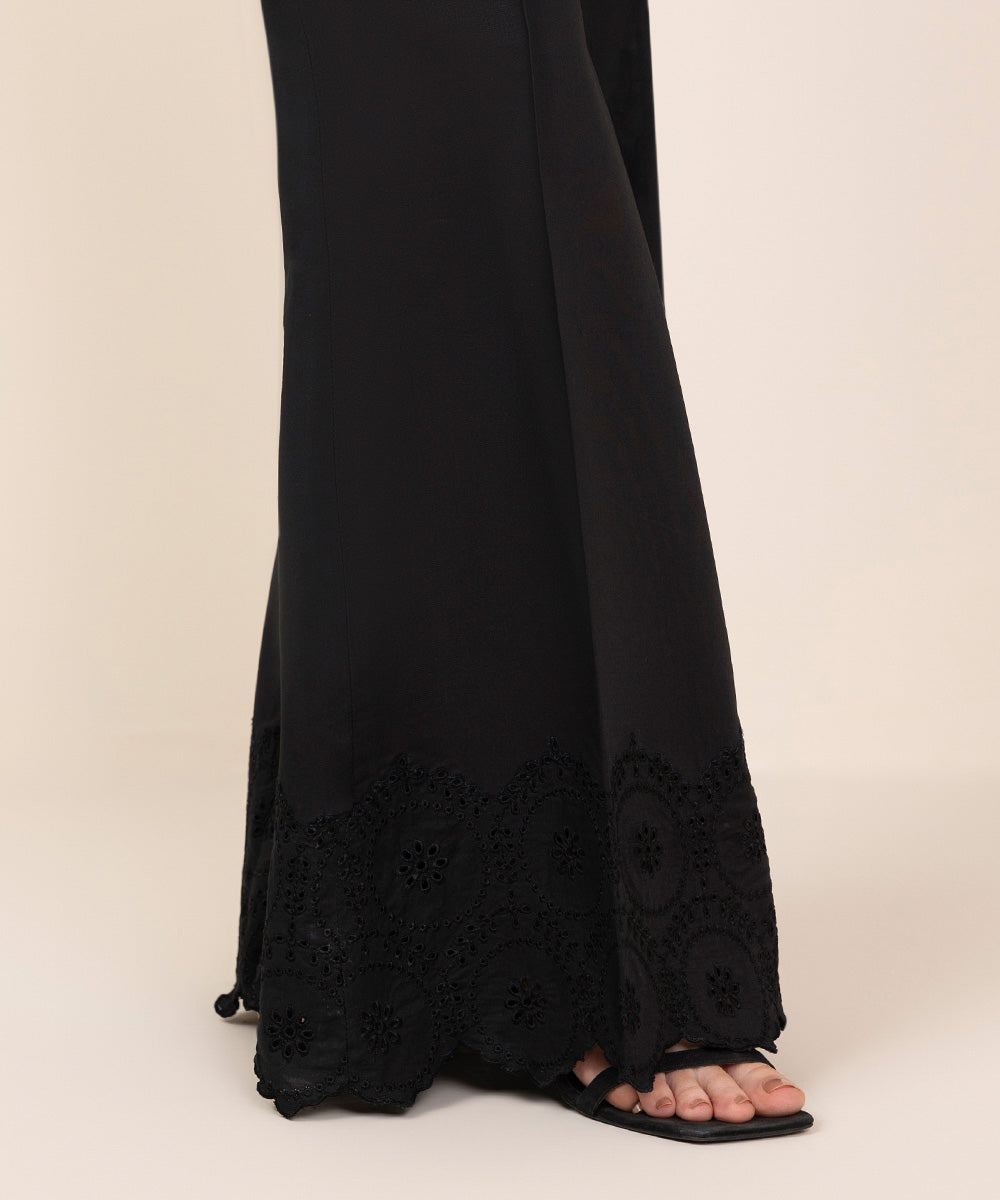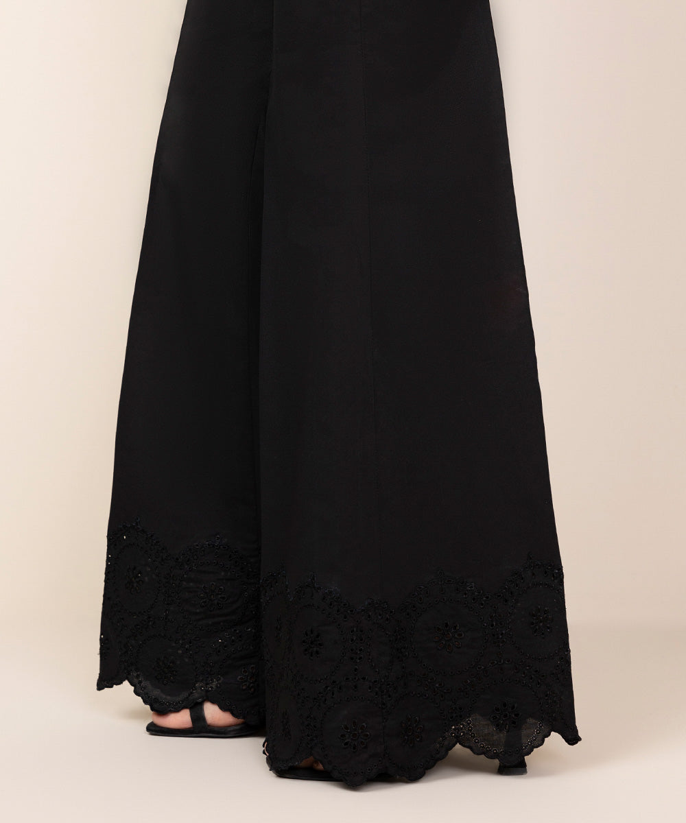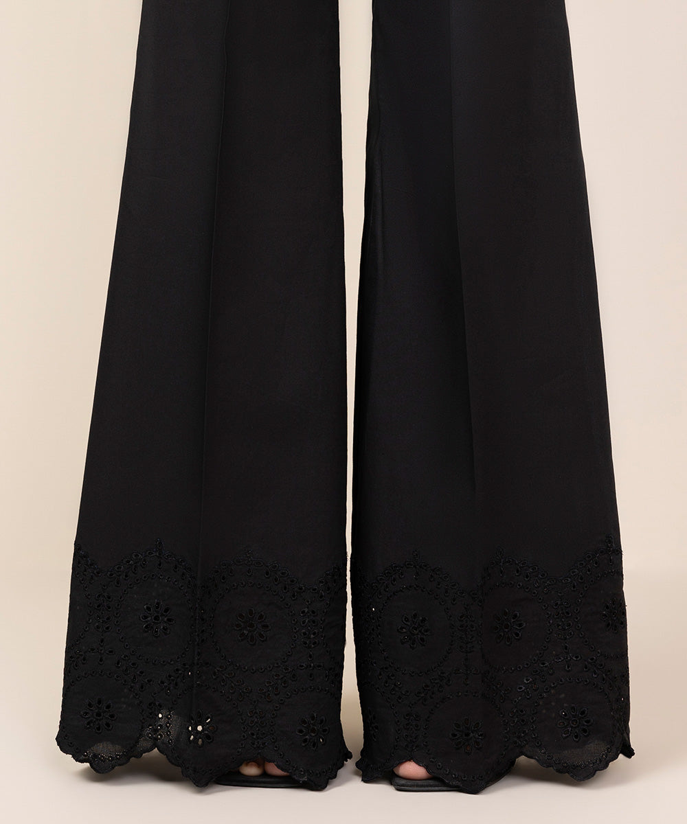 Step out in style in our embroidered black cotton trousers.