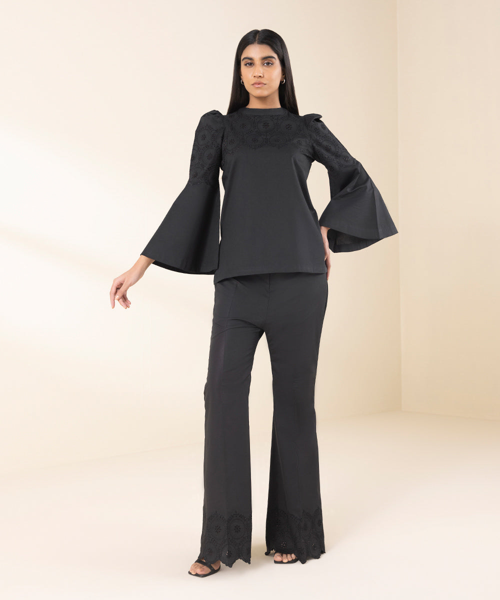 Dyed Embroidered Cotton Trouser 2pc