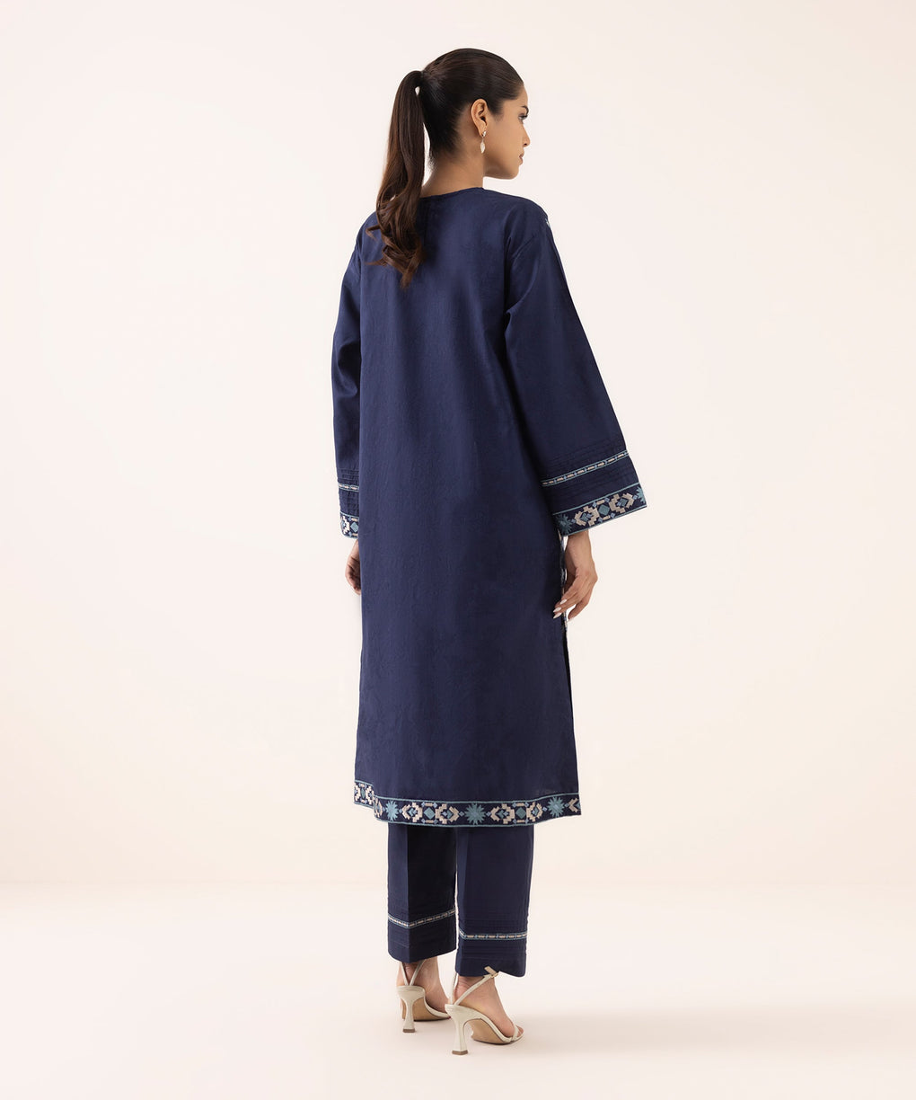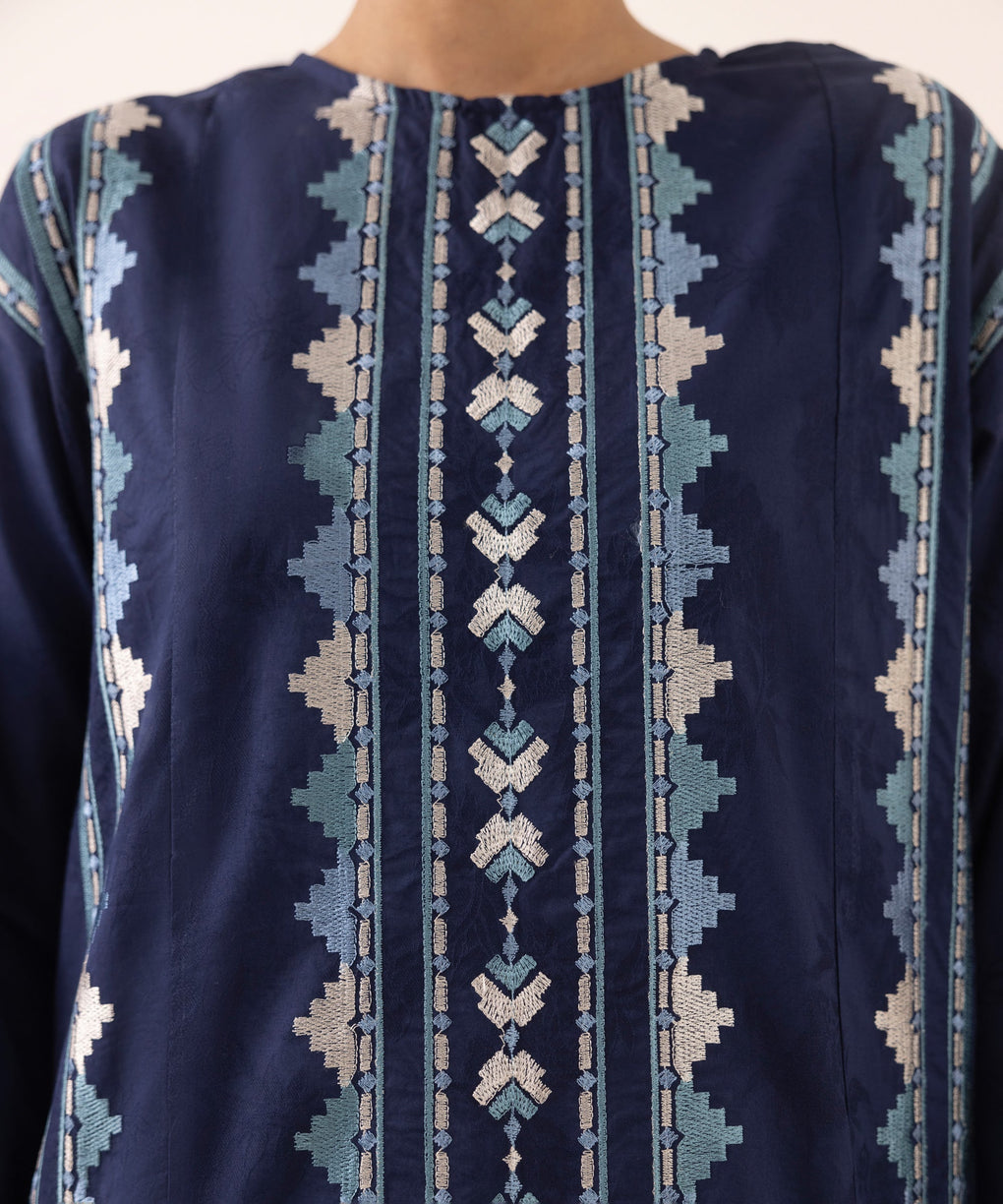 Dyed With Embroidered Front Panel, Dyed With Embroidered Back Panel, Round Neckline, Full Sleeves, Long Length