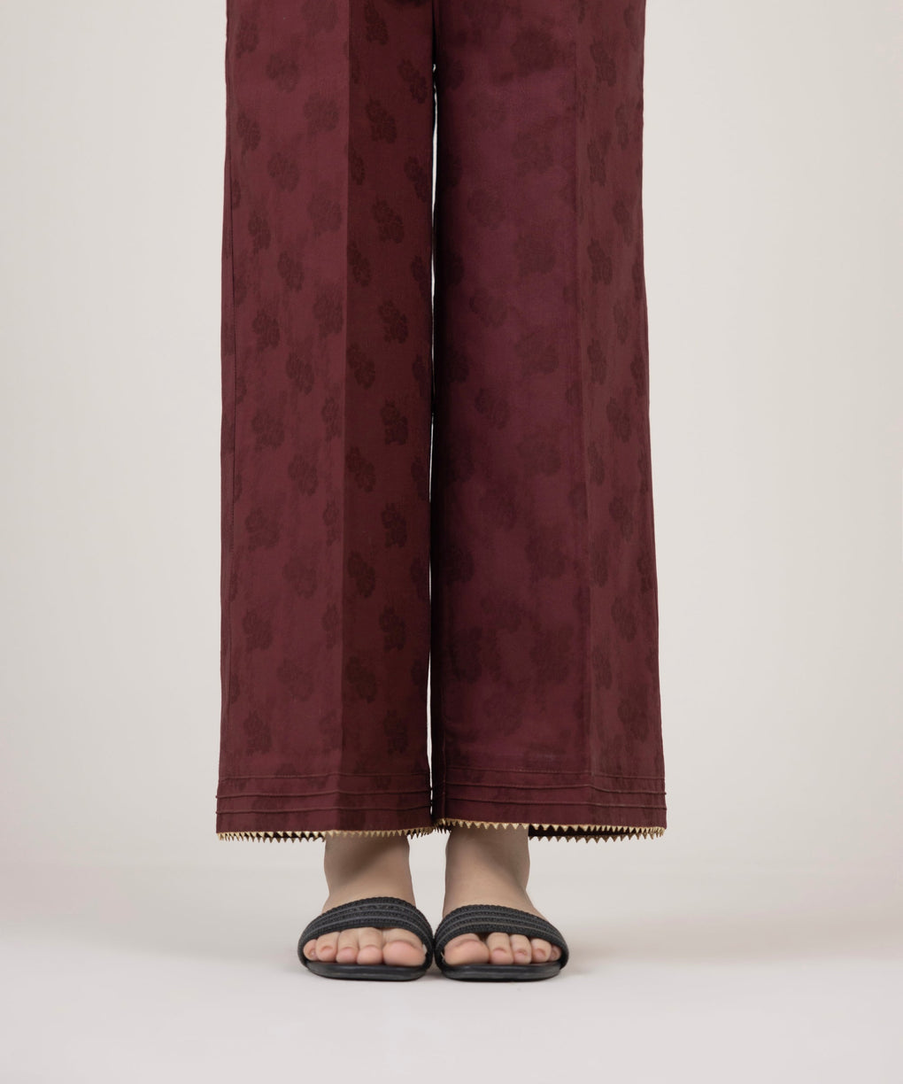 Complete the look in our dyed maroon cotton jacquard culottes.
