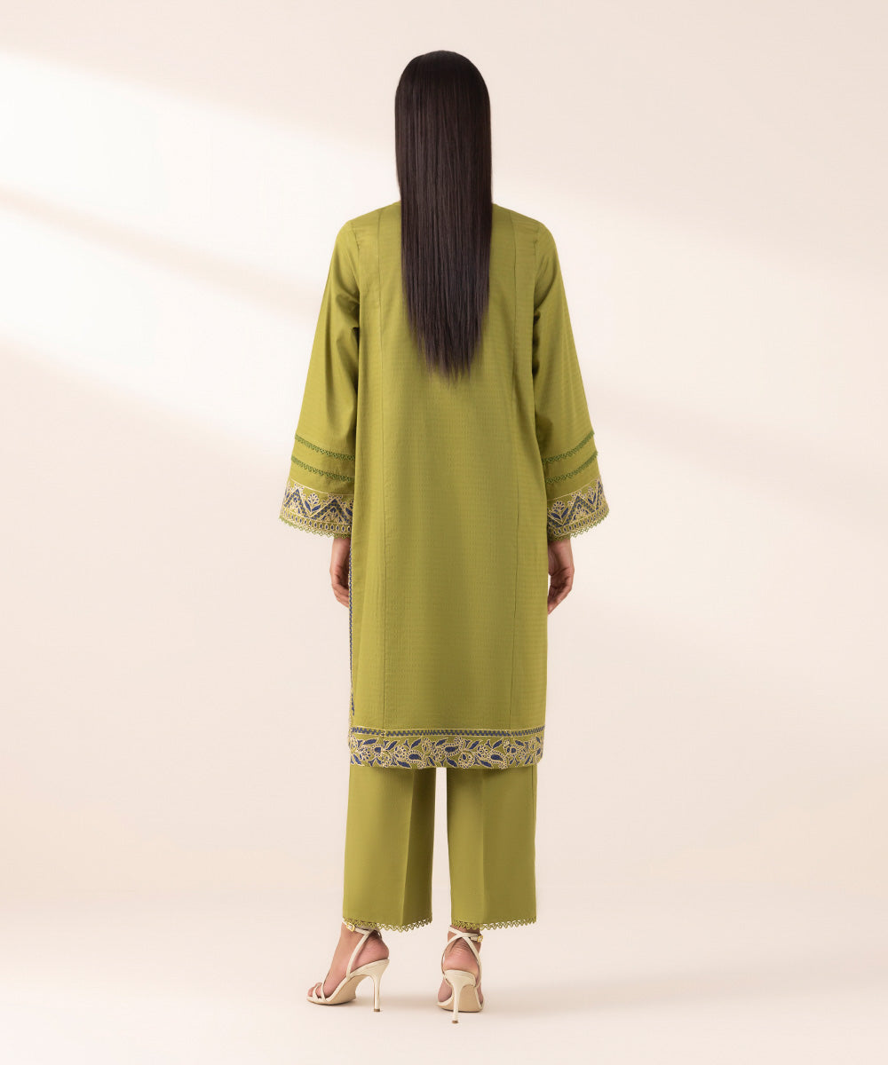 Make a statement with our green embroidered dobby shirt featuring a round neckline.