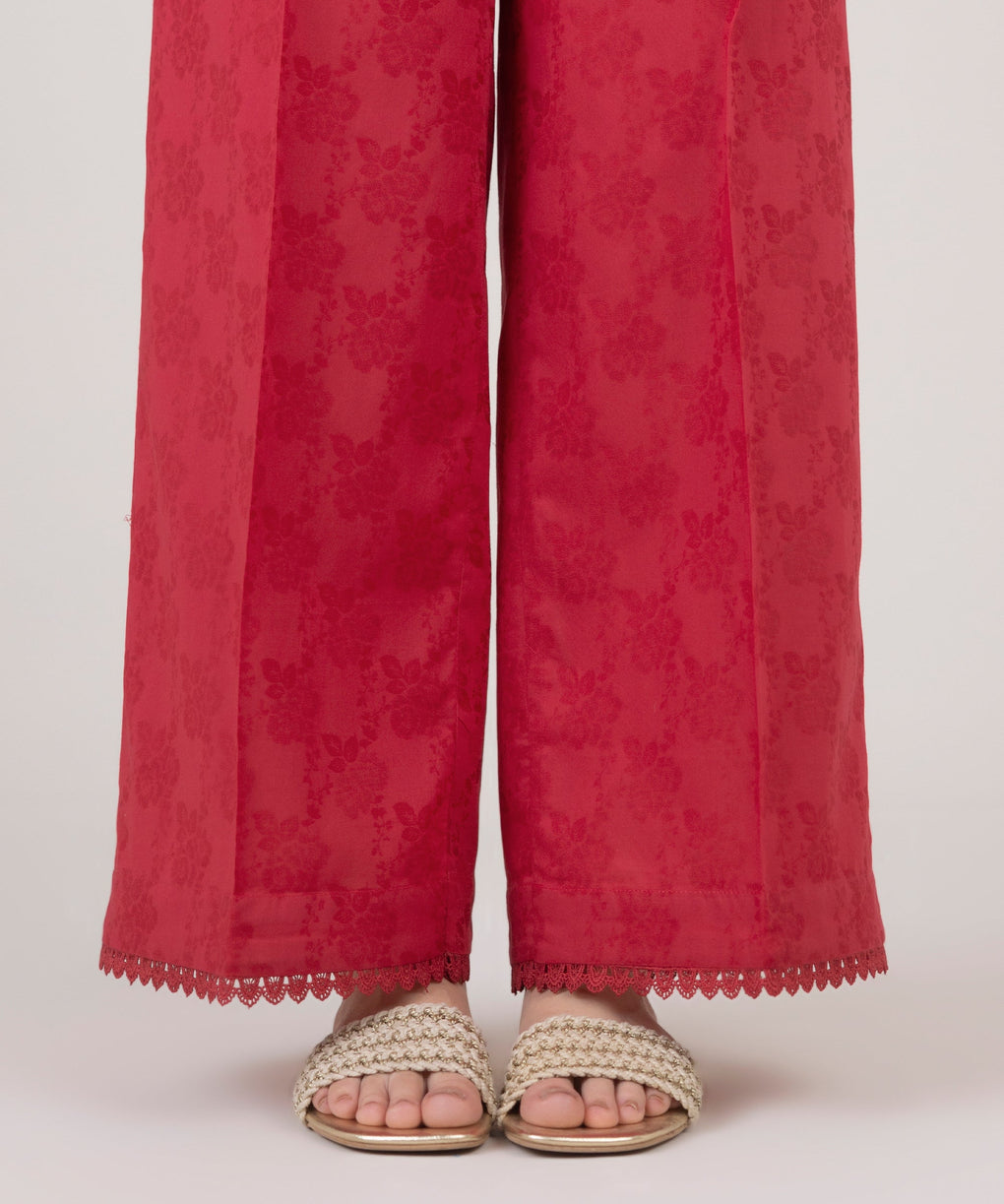 Step out in style in our dyed red cotton jacquard culottes.