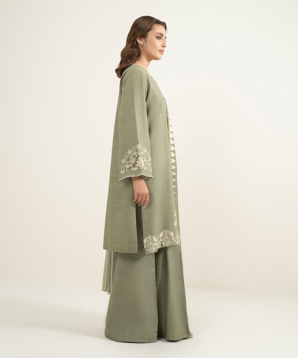 3 Piece - Embroidered Khaddar Suit