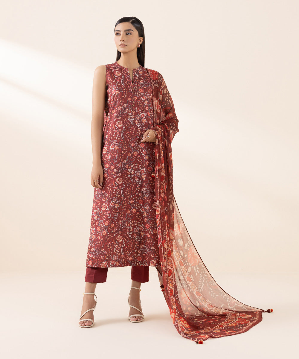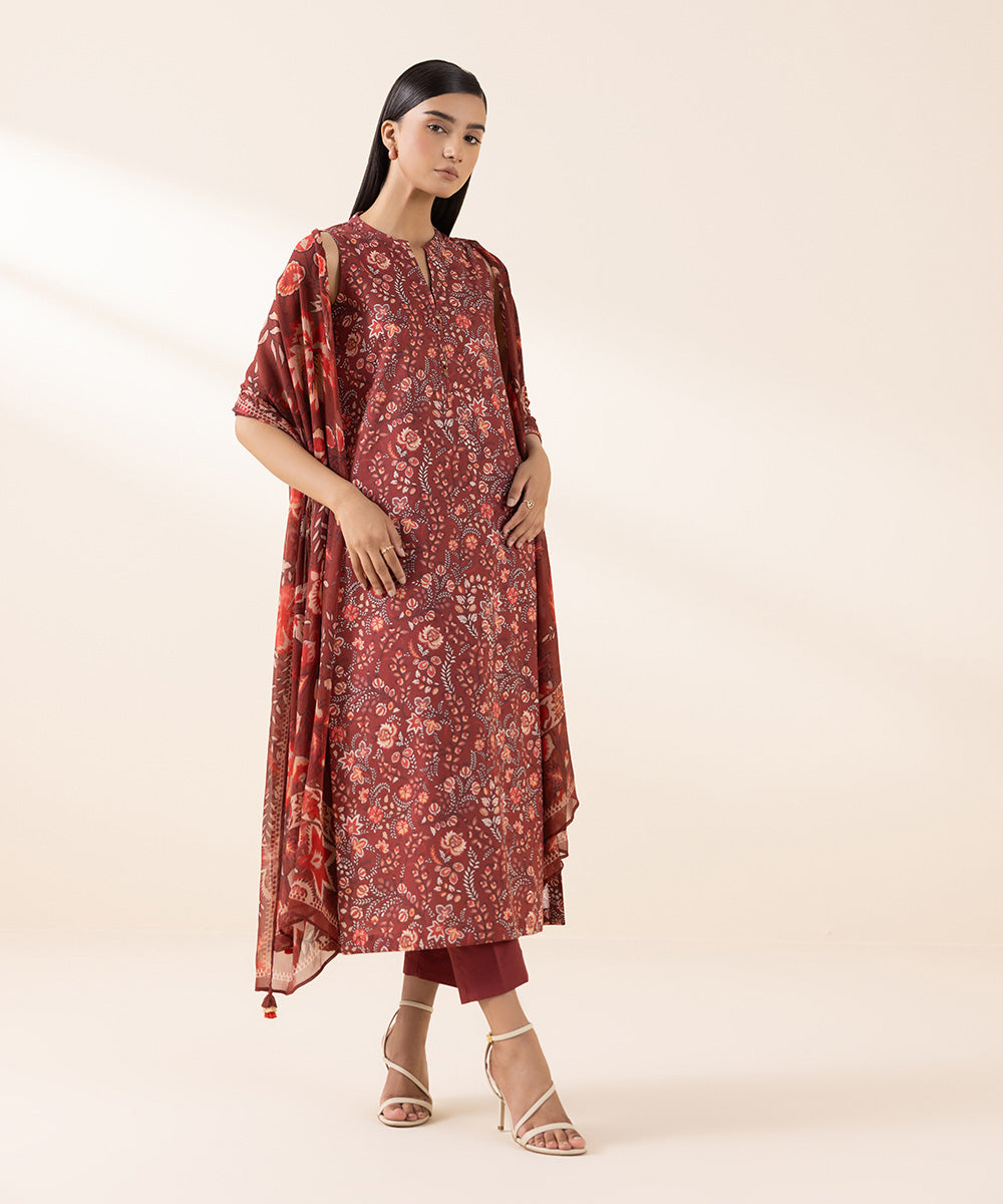 Opt for a traditional look in our printed one-piece featuring a maroon lawn shirt Unstitched 1-Piece Shirt: Printed Lawn Shirt 3M Fabric: LawnColour: Maroon