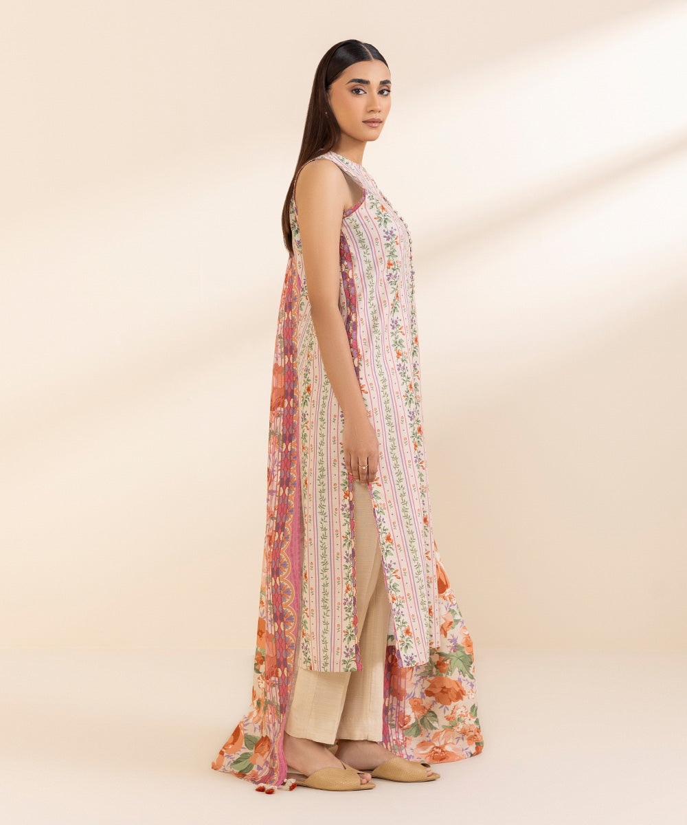 Elevate your style with our two-piece ensemble in ivory featuring a printed light khaddar shirt paired with a multicoloured dupatta.