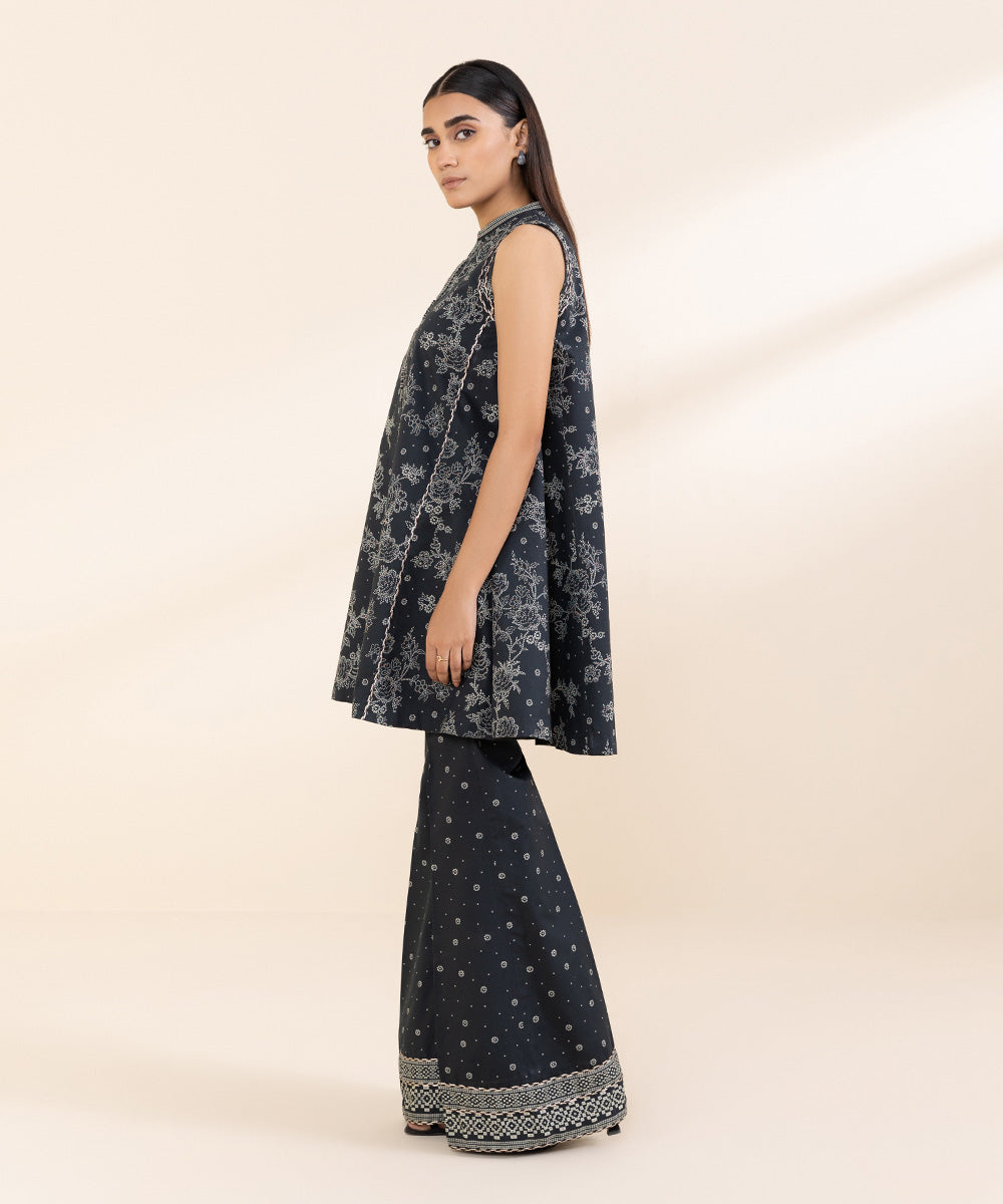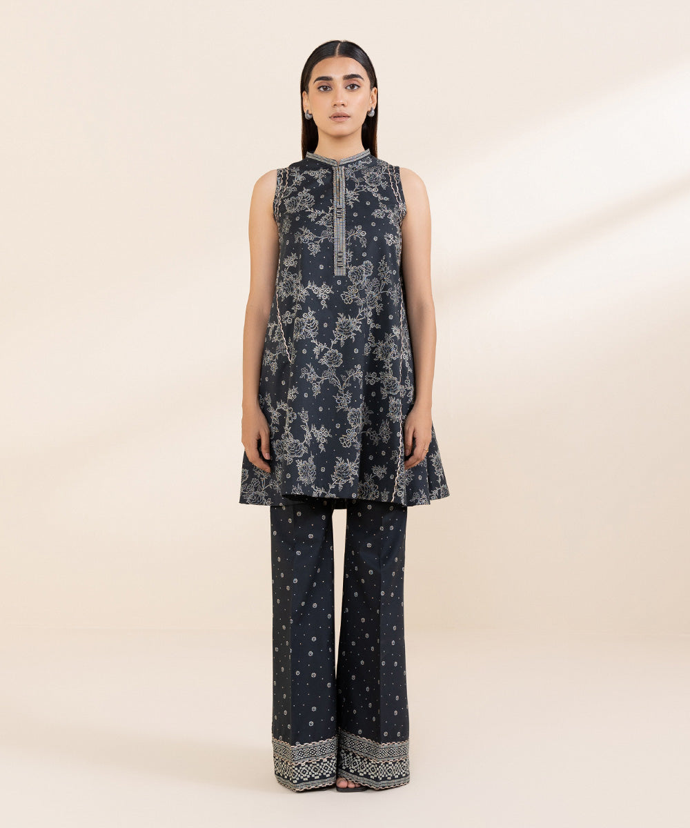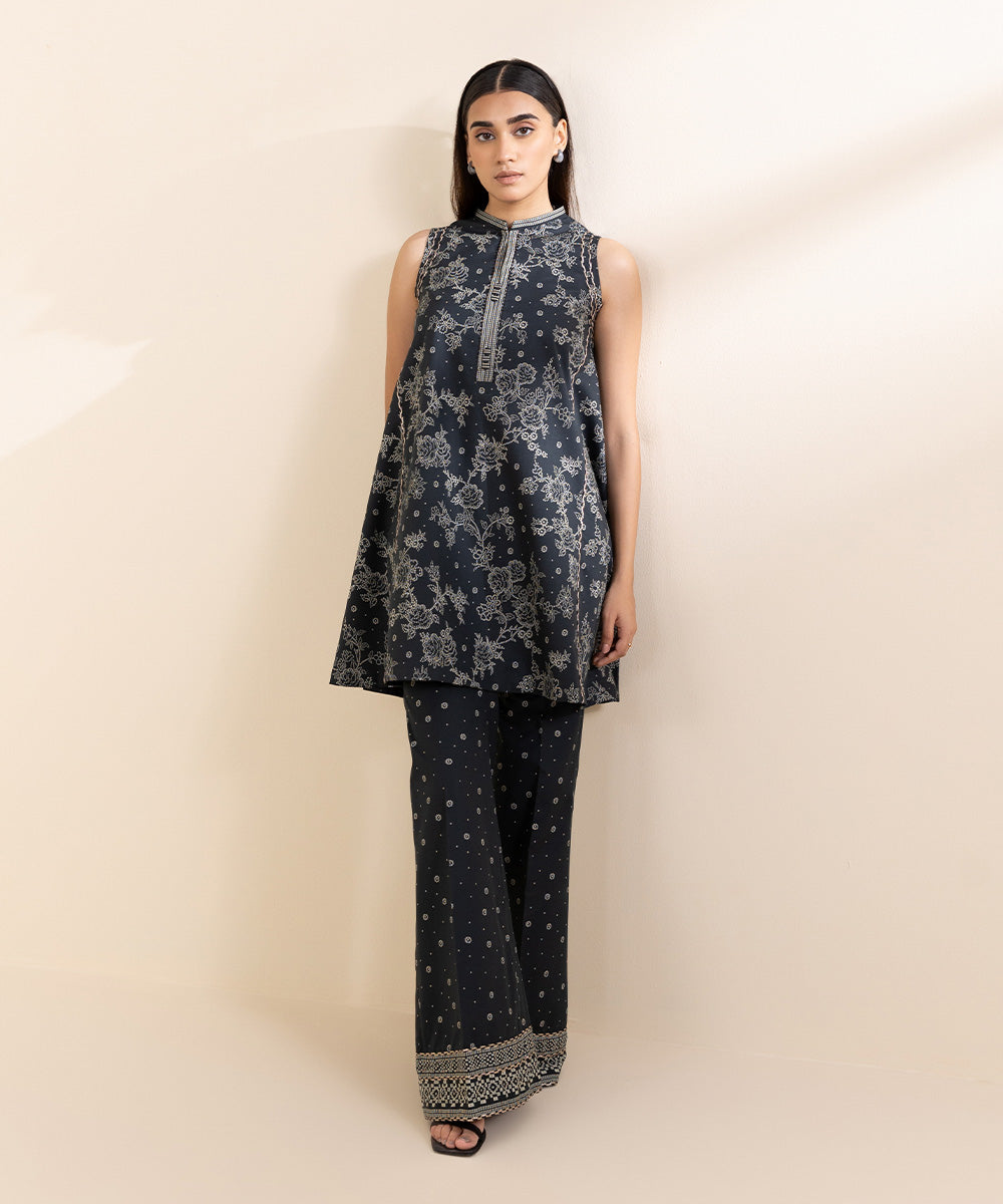 Elevate your style with our two-piece embroidered sage green and black ensemble featuring a cambric shirt and trouser Unstitched 2-Piece Shirt: Printed Cambric Shirt 3MEmbroidered Neckline 1PCEmbroidered Sleeves Patches 2PCEmbroidered Hem Border 1PC Fabric: CambricColour: Sage Green Trousers: Printed Cambric Trouser...