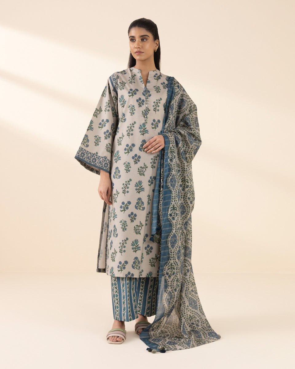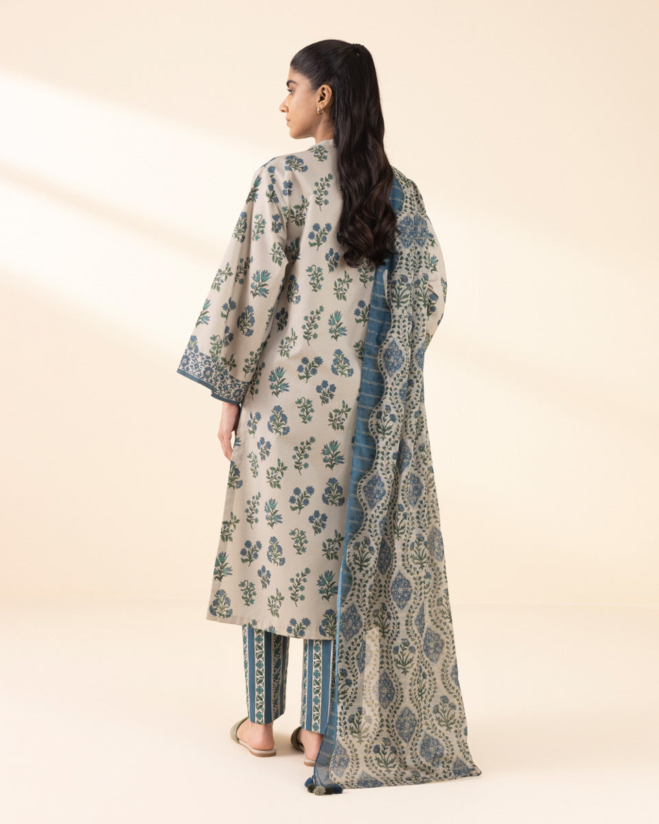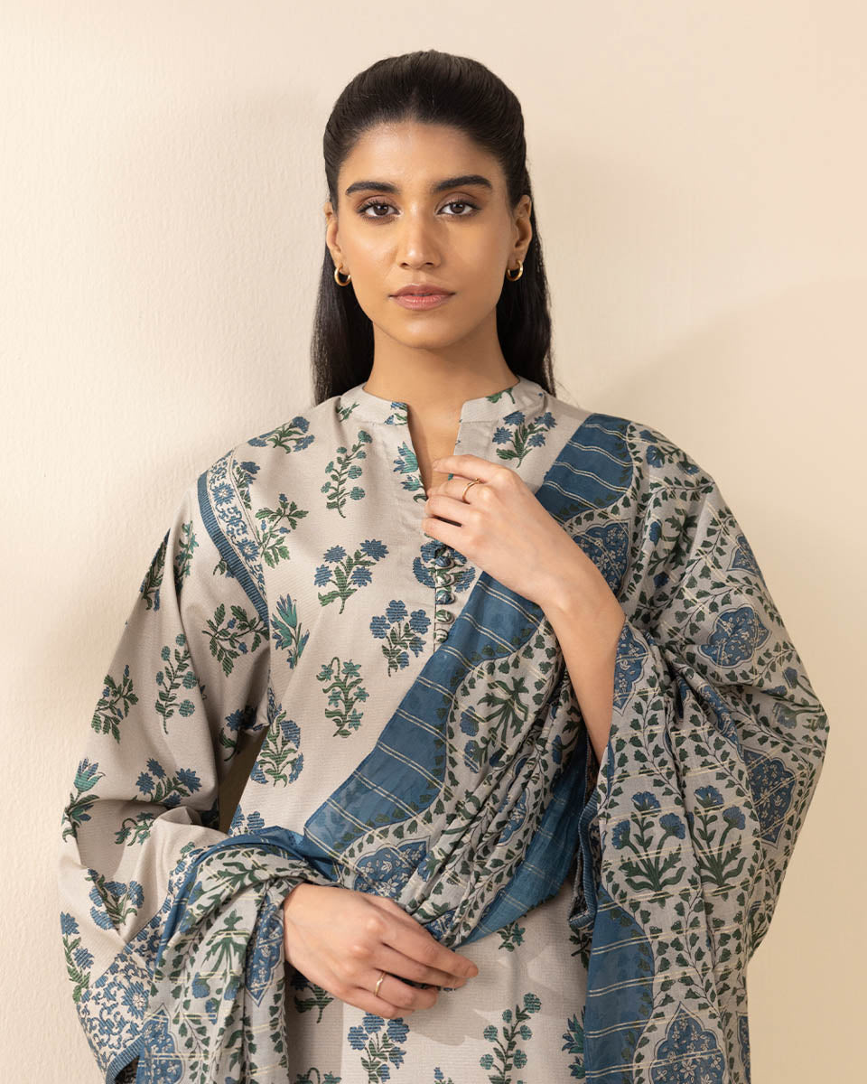 3 Piece - Printed Zari Lawn Suit