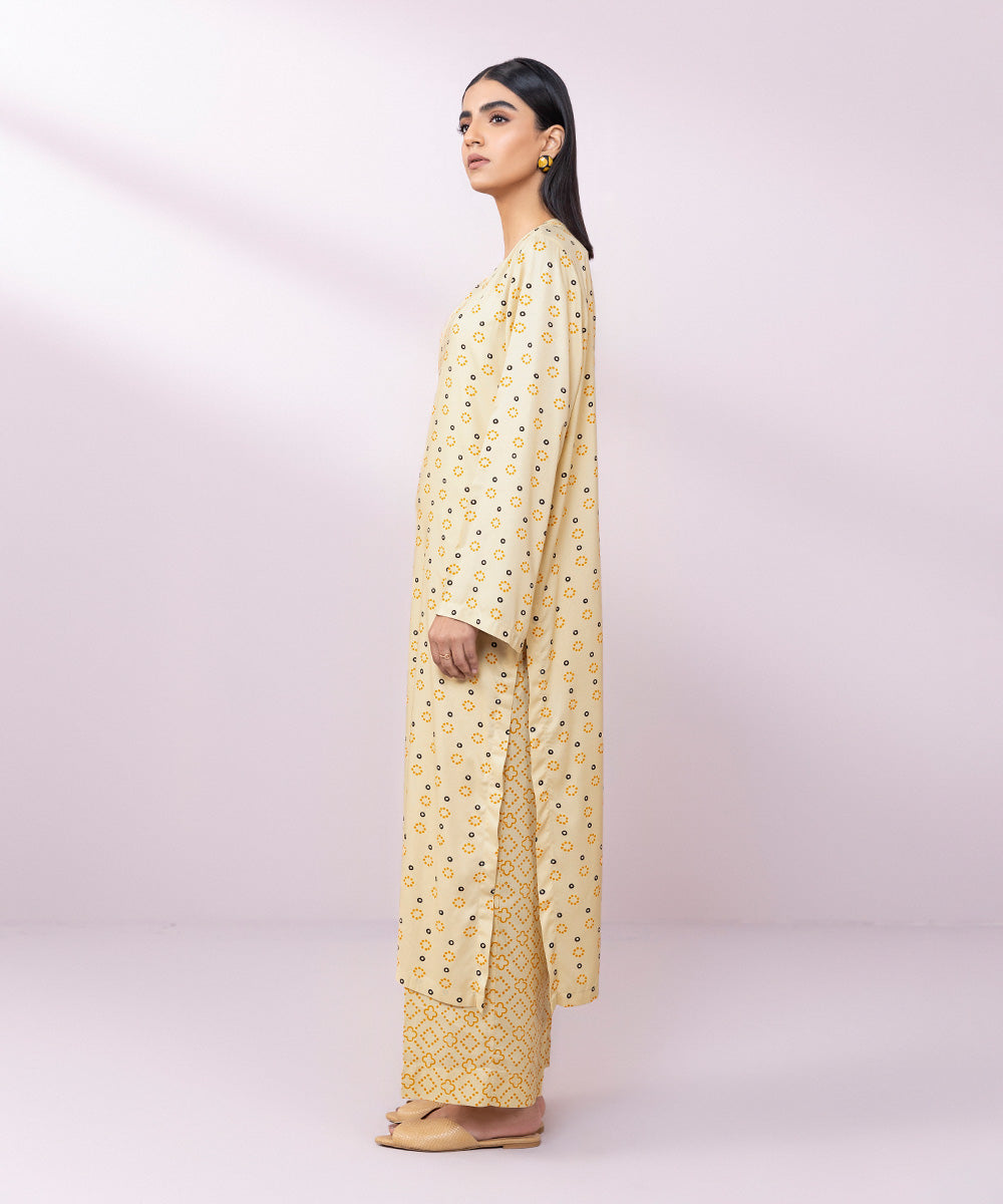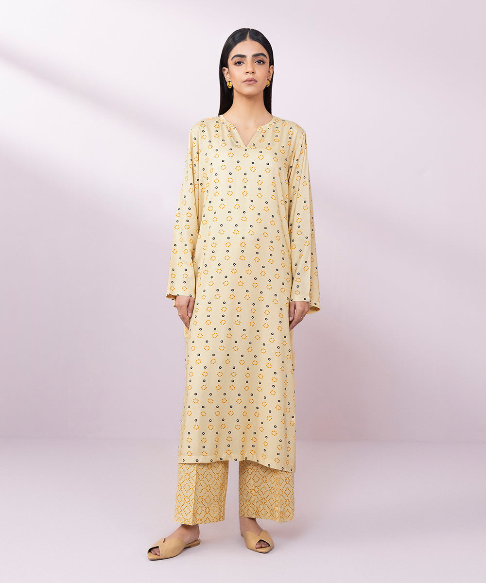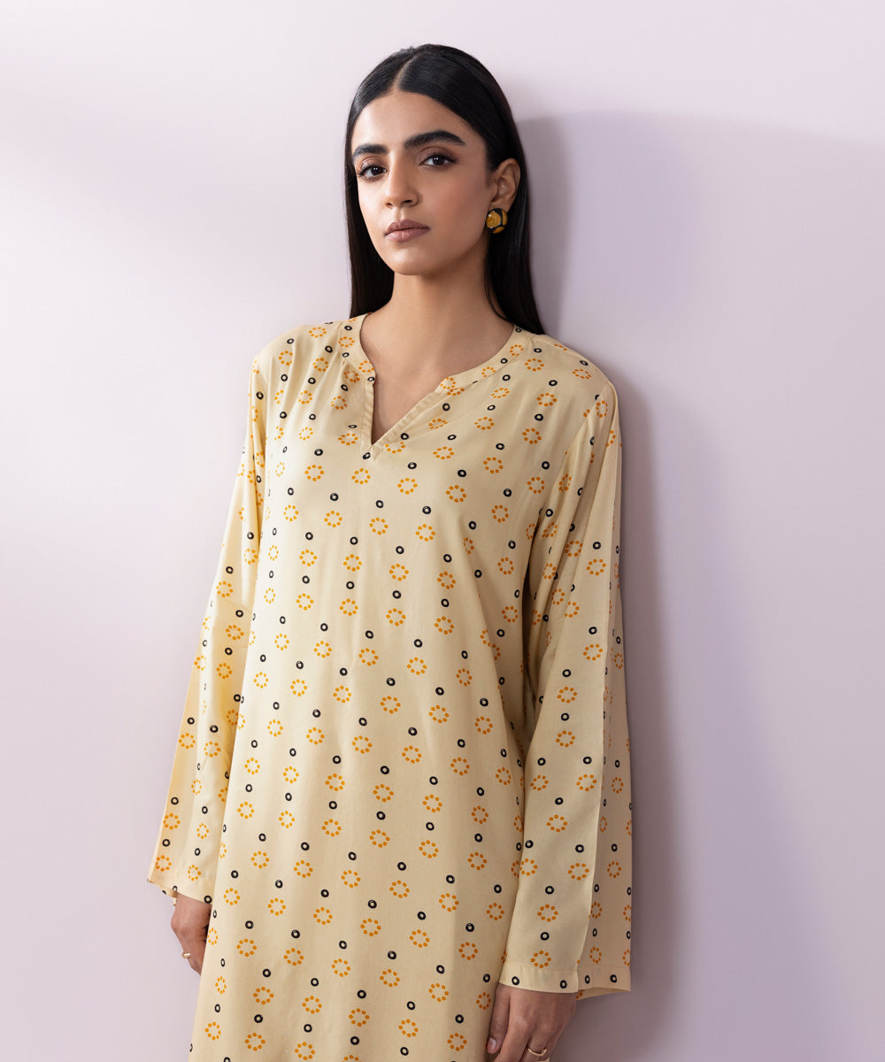 Printed Front, Printed Back, Full Sleeves, Band Neckline with a slit